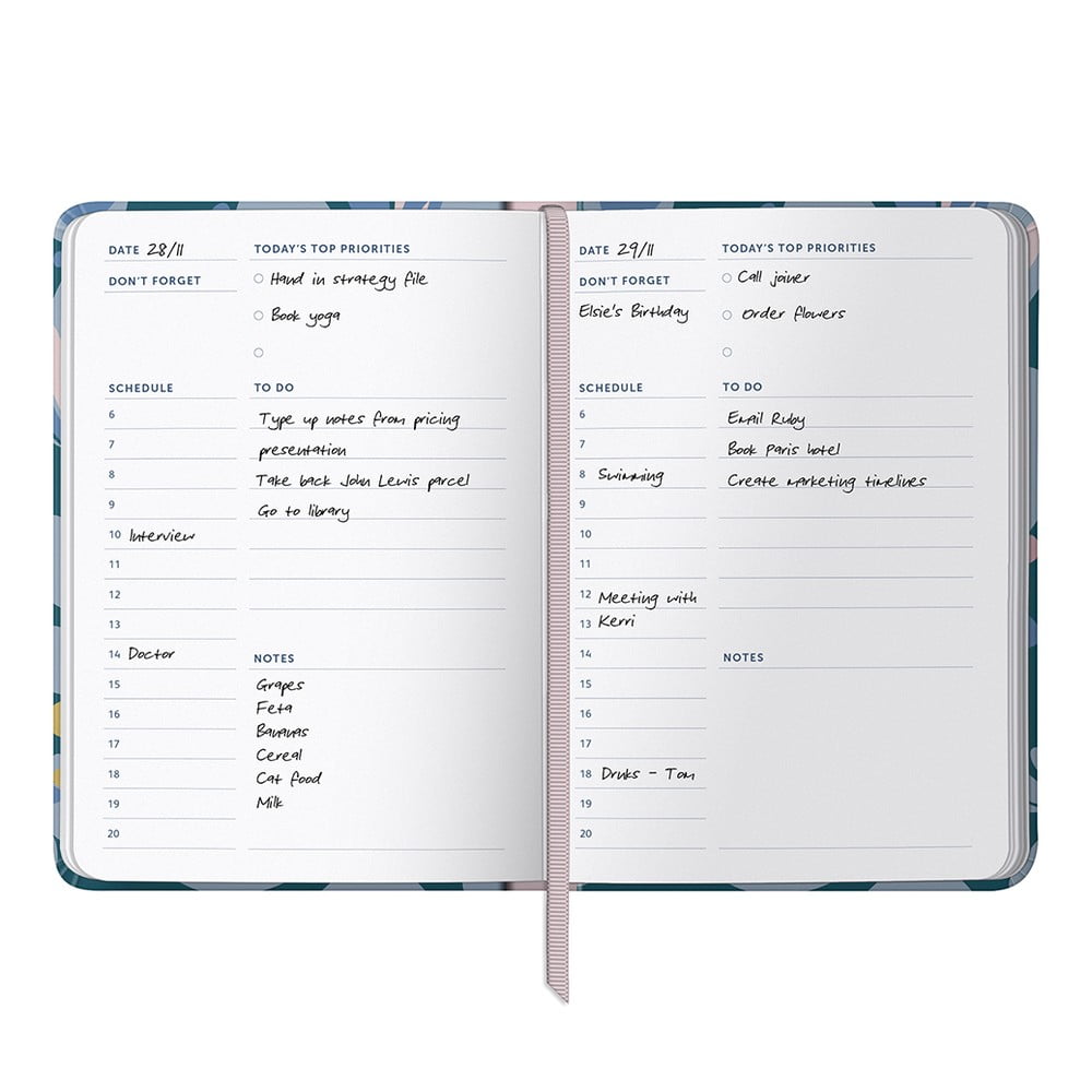 Niedatowany kalendarz oferuje mnóstwo miejsca na codzienne notatki i listy rzeczy do zrobienia, niezależnie od tego, czy korzystasz z niego przez cały rok, czy tylko okazjonalnie. Ponadto, zawiera on również dzienny harmonogram i miejsce do zapisywania priorytetów.