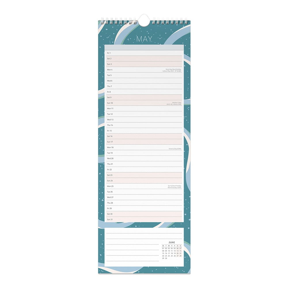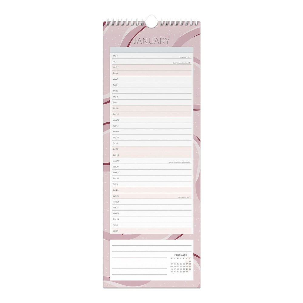 Kalendarz ma miesięczny układ na stronie i posiada poręczny haczyk do łatwego zawieszenia. Posiada również poręczną kieszeń, w której można przechowywać małe notatki lub ważne dokumenty.