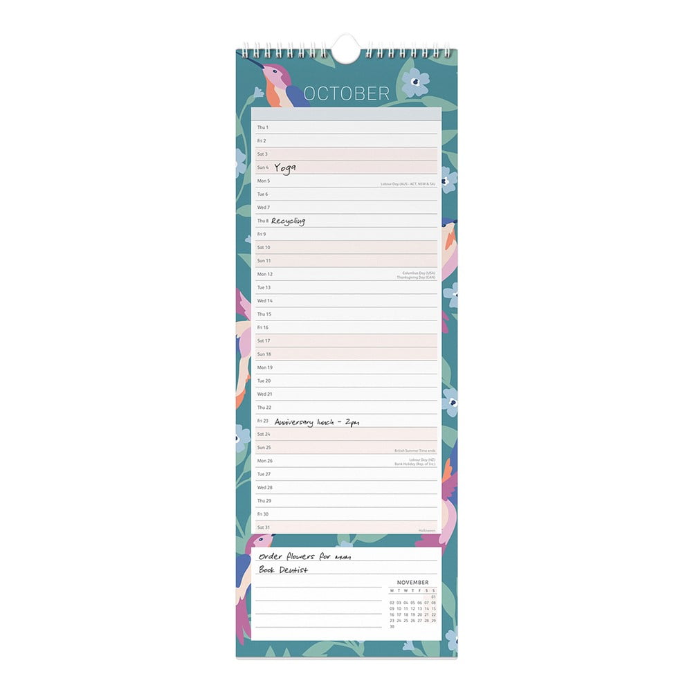 Kalendarz ścienny marki Busy B jest idealnym akcesorium do organizowania 2026 roku. Zachwyca smukłą konstrukcją ozdobioną motywem kolibrów i kwiatów.