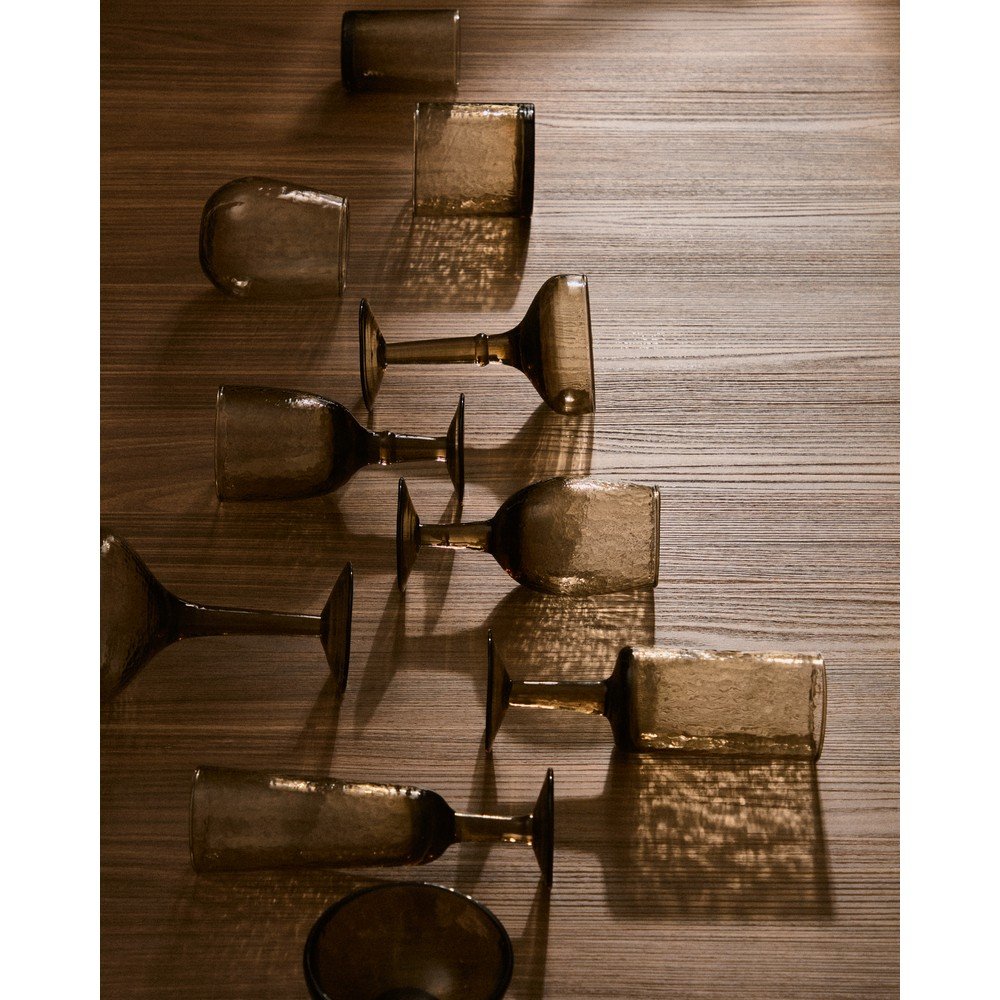 Kieliszek do wina Vinea marki Kave Home został wykonany ze szkła z recyklingu. Jego prosty, a zarazem ponadczasowy design z charakterystyczną, teksturowaną powierzchnią z łatwością dopasuje się do różnych stylów i okazji. Dzięki temu Twoja zastawa zyska funkcjonalność i niepowtarzalny charakter.