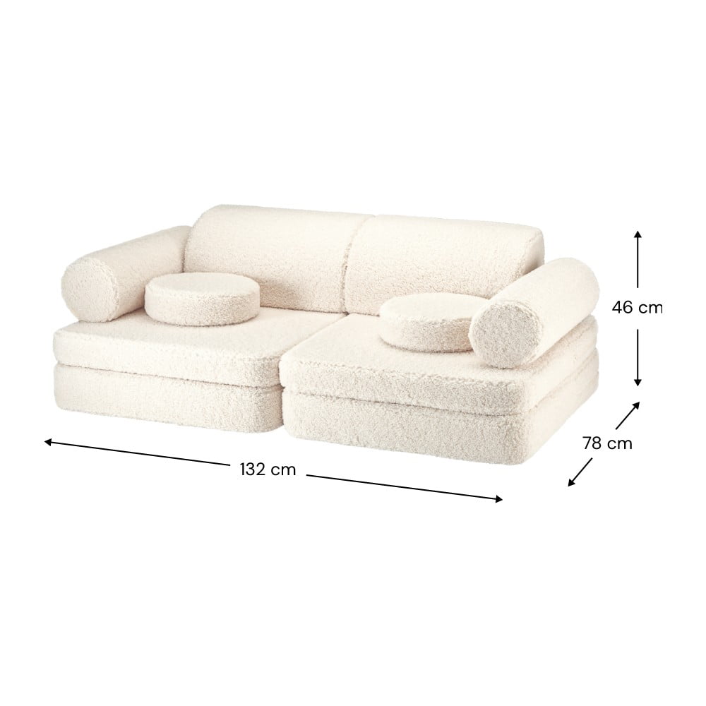 Jest odpowiednia dla dzieci w wieku od 3 do 9 lat, a dzięki miękkiej i przestronnej konstrukcji zapewnia komfort i kreatywność w każdym pokoju dziecięcym. Pokrowiec sofy jest zdejmowany i można go prać w pralce z podobnymi kolorami w programie do prania ręcznego. Następnie wystarczy pozostawić do wyschnięcia na powietrzu.