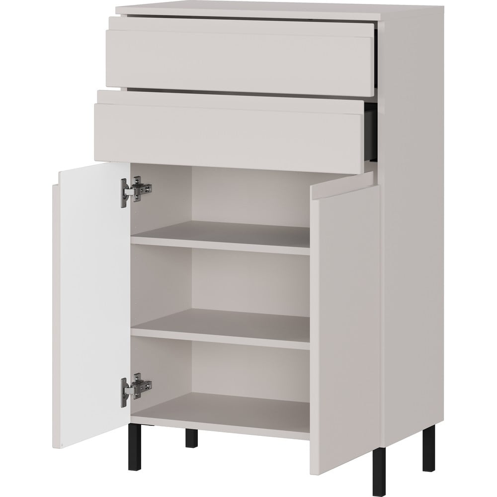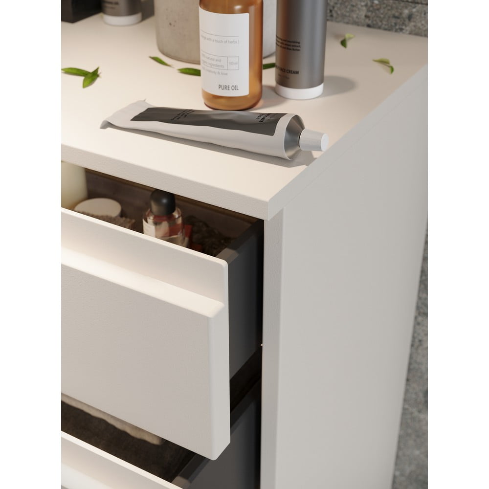 Odkryj kremowy zestaw łazienkowy Salinas marki Germania, który wniesie do Twojej łazienki elegancję i funkcjonalność. Zestaw składa się z komody, wysokiej szafki, szafki pod umywalkę i lustrzanej szafki z oświetleniem LED. Wykończenie na wysoki połysk i wpuszczane uchwyty dodają nowoczesnego wyglądu, a regulowane półki i drzwiczki z cichym domykiem zapewniają praktyczne użytkowanie. Meble w kolorze kaszmiru z czarnymi metalowymi nóżkami to idealny wybór do stylowej i zorganizowanej łazienki.