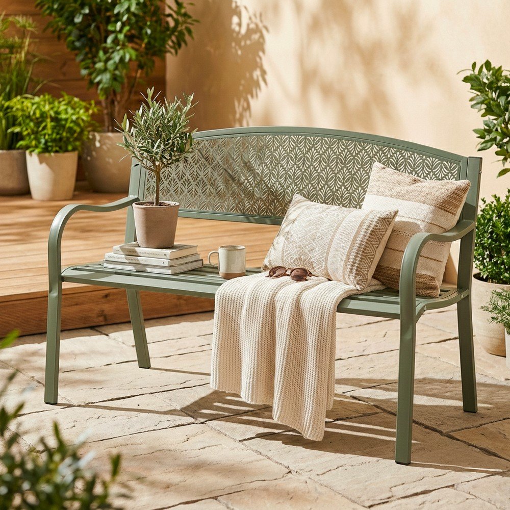 Metalowa ławka ogrodowa w kolorze khaki Lizette – Bizzotto