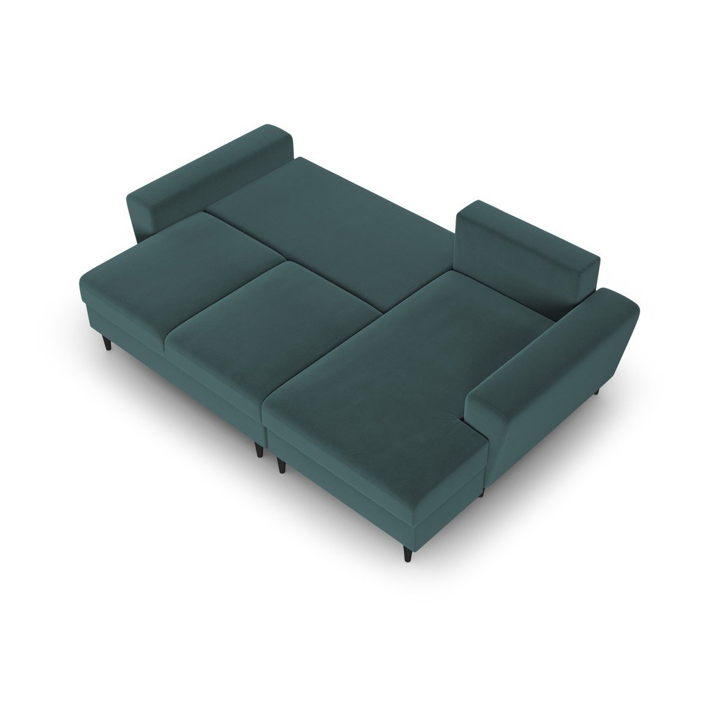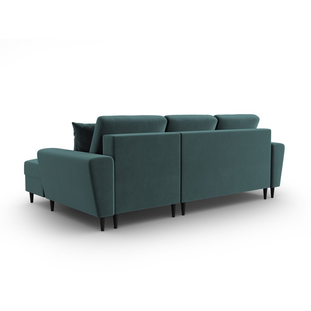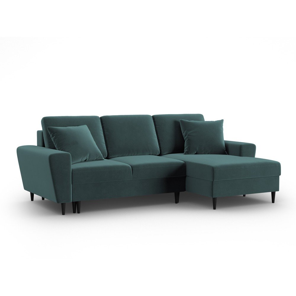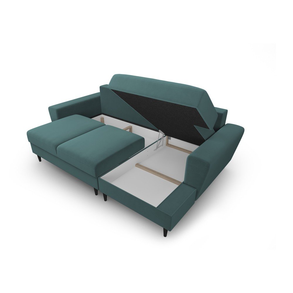 Morski aksamitny rozkładany narożnik ze schowkiem (prawostronny/z szezlongiem) Kyoto – Cosmopolitan Design