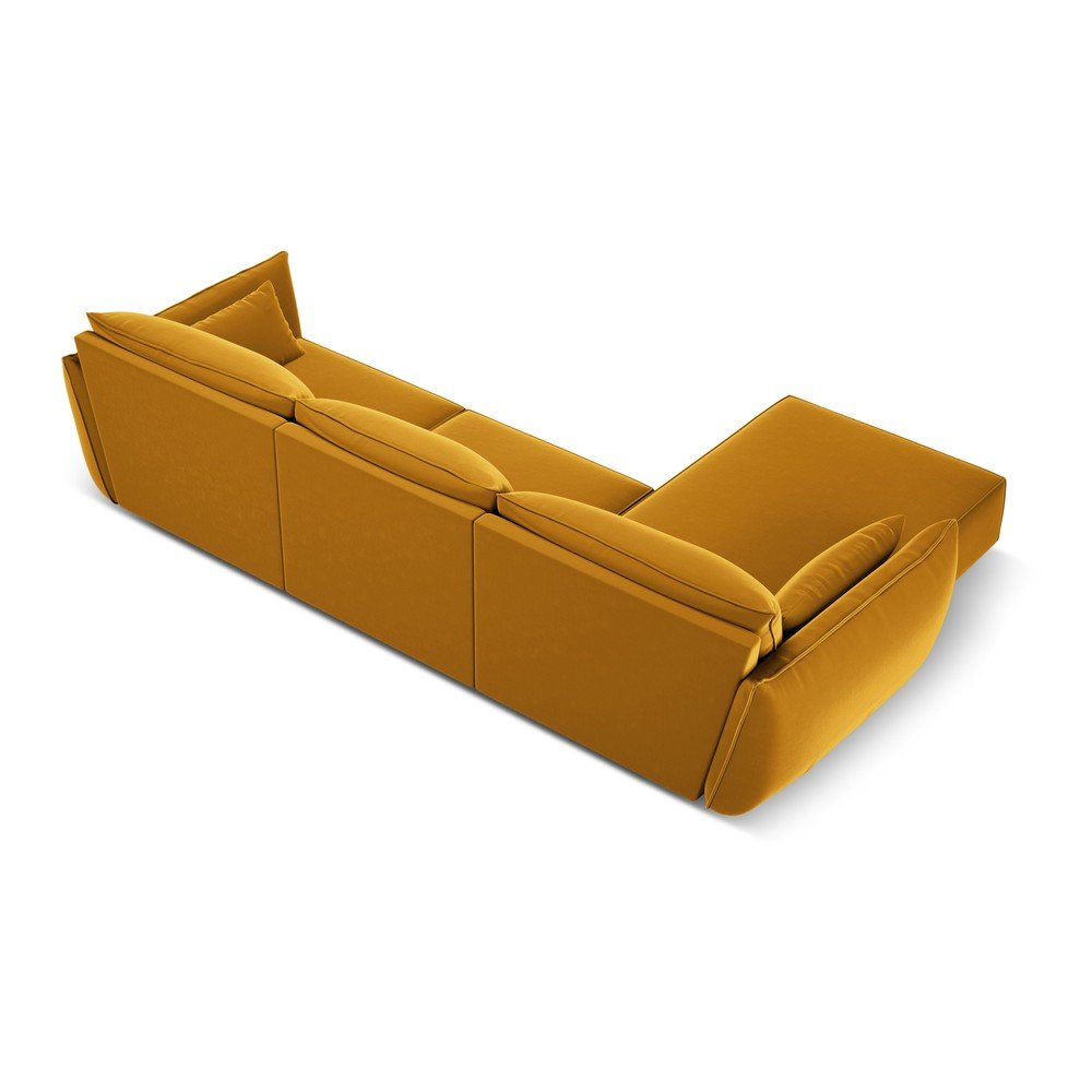 Musztardowy aksamitny narożnik (lewostronny/z szezlongiem) Vanda – Mazzini Sofas