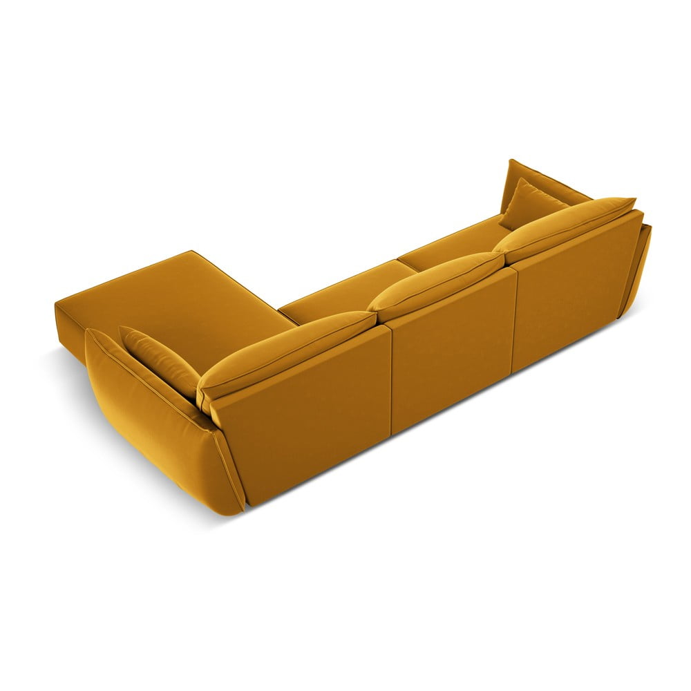 Musztardowy aksamitny narożnik (prawostronny/z szezlongiem) Vanda – Mazzini Sofas