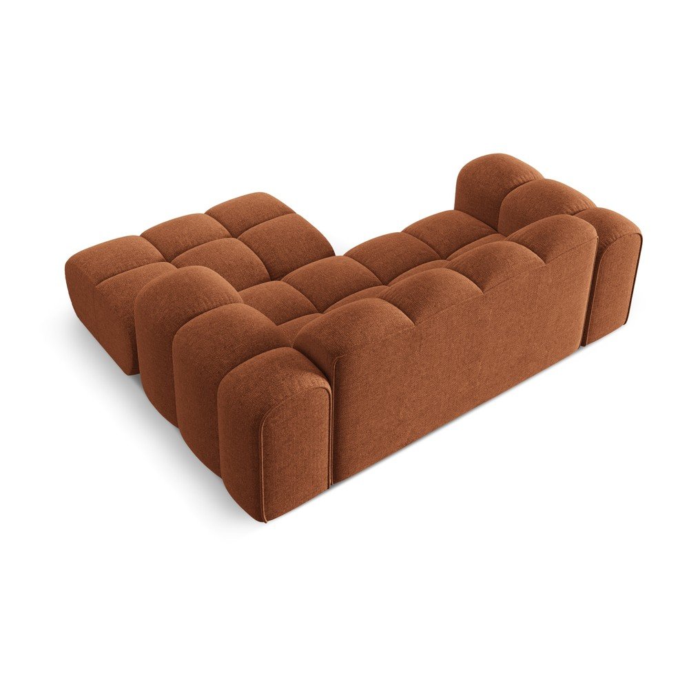 Narożnik z tkaniny szenilowej (prawostronny/z szezlongiem) w kolorze terakoty Treno – Cosmopolitan Design