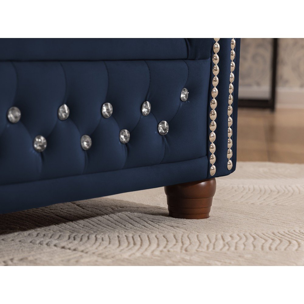 Niebieski aksamitny rozkładany narożnik (lewostronny/w kształcie litery L) York Blik – Ropez