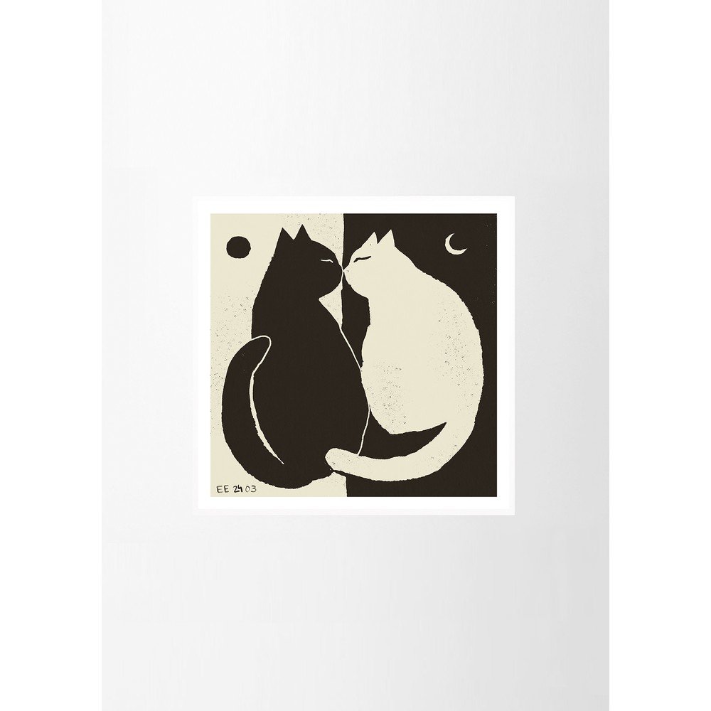 Plakat You and Me – Enikő Katalin Eged marki The Poster Club przedstawia minimalistyczny motyw dwóch przytulających się do siebie kotów, przywodzący na myśl harmonijny związek. Kompozycję uzupełniają symbole słońca i księżyca, nadając całości zrównoważone i spokojne wrażenie.