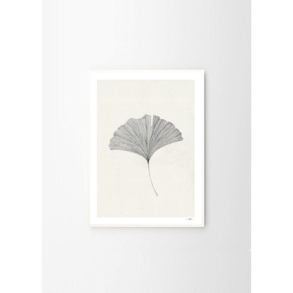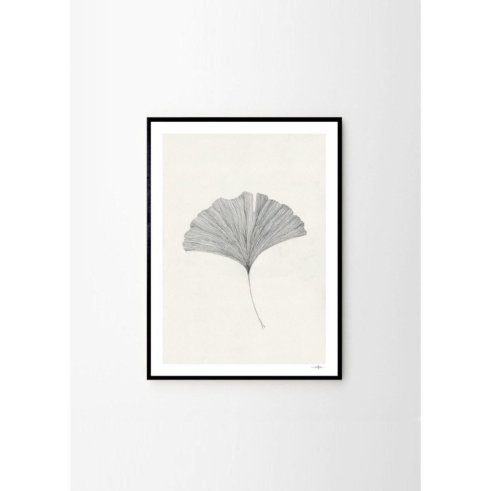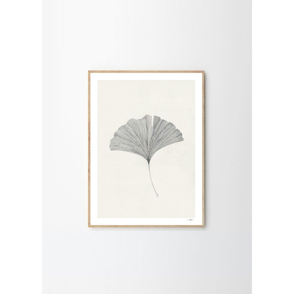Plakat The Ginkgo Leaf – Ana Frois marki The Poster Club przedstawia minimalistyczny rysunek liścia miłorzębu, wykonany delikatnymi i szczegółowymi liniami.