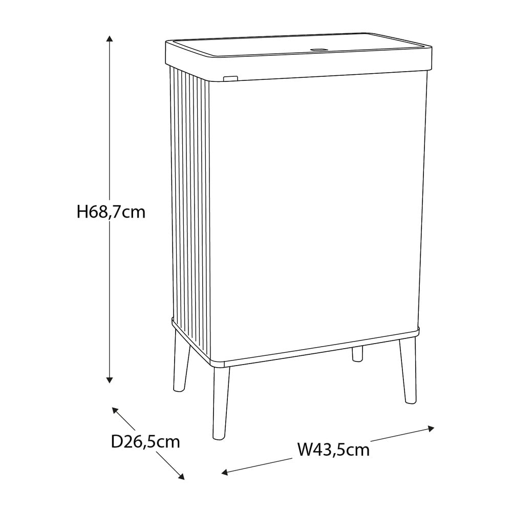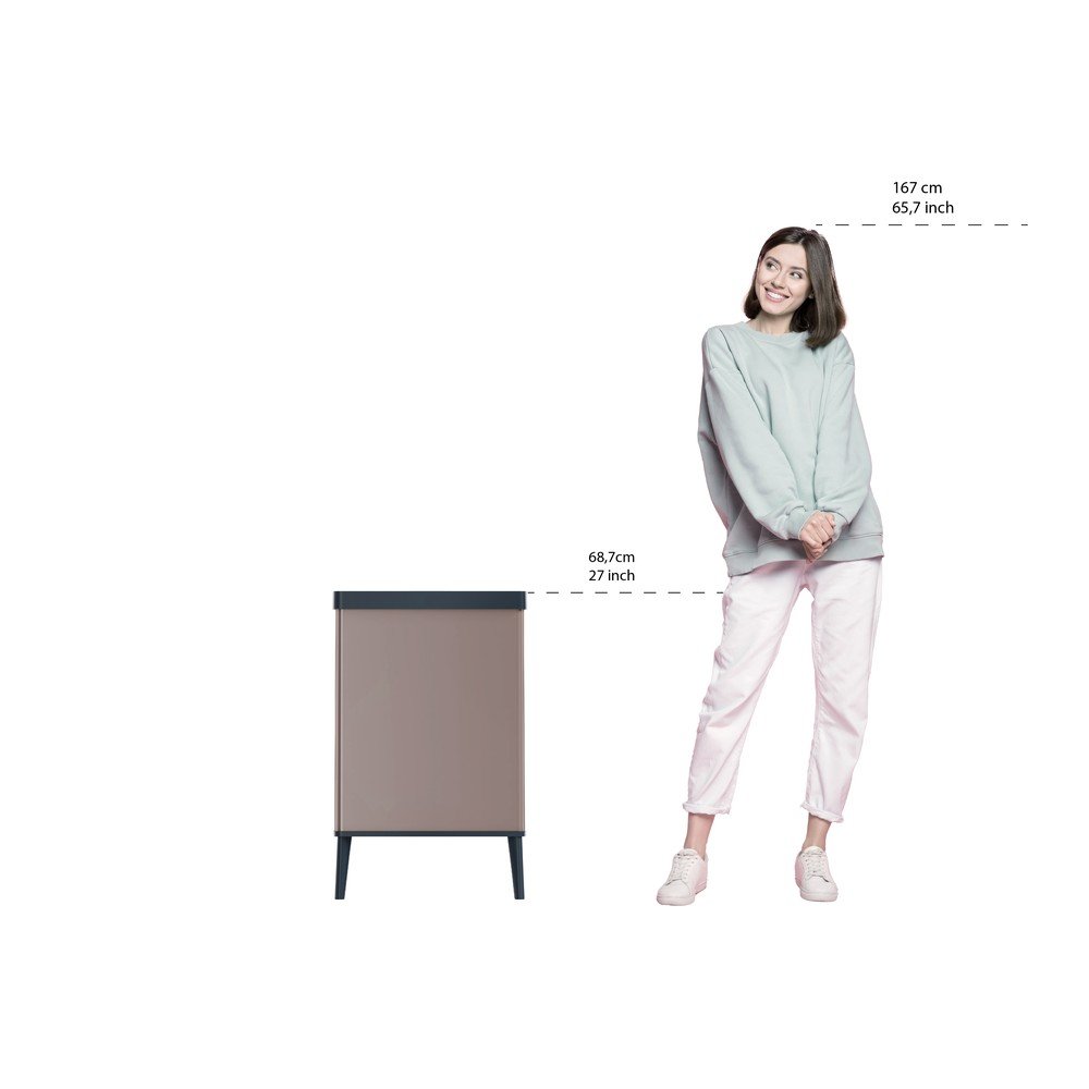 Prostokątny kosz ma pojemność 54 l, jest wykonany z materiału pochodzącego z recyklingu i idealnie nadaje się do kuchni dzięki otwieraniu za pomocą przycisku. Wytrzymała, antypoślizgowa konstrukcja chroni podłogę przed zarysowaniami.