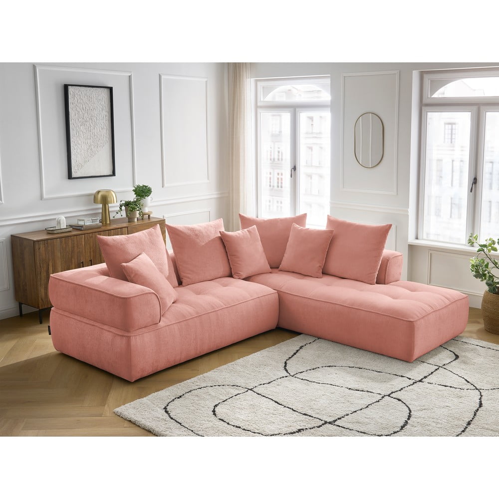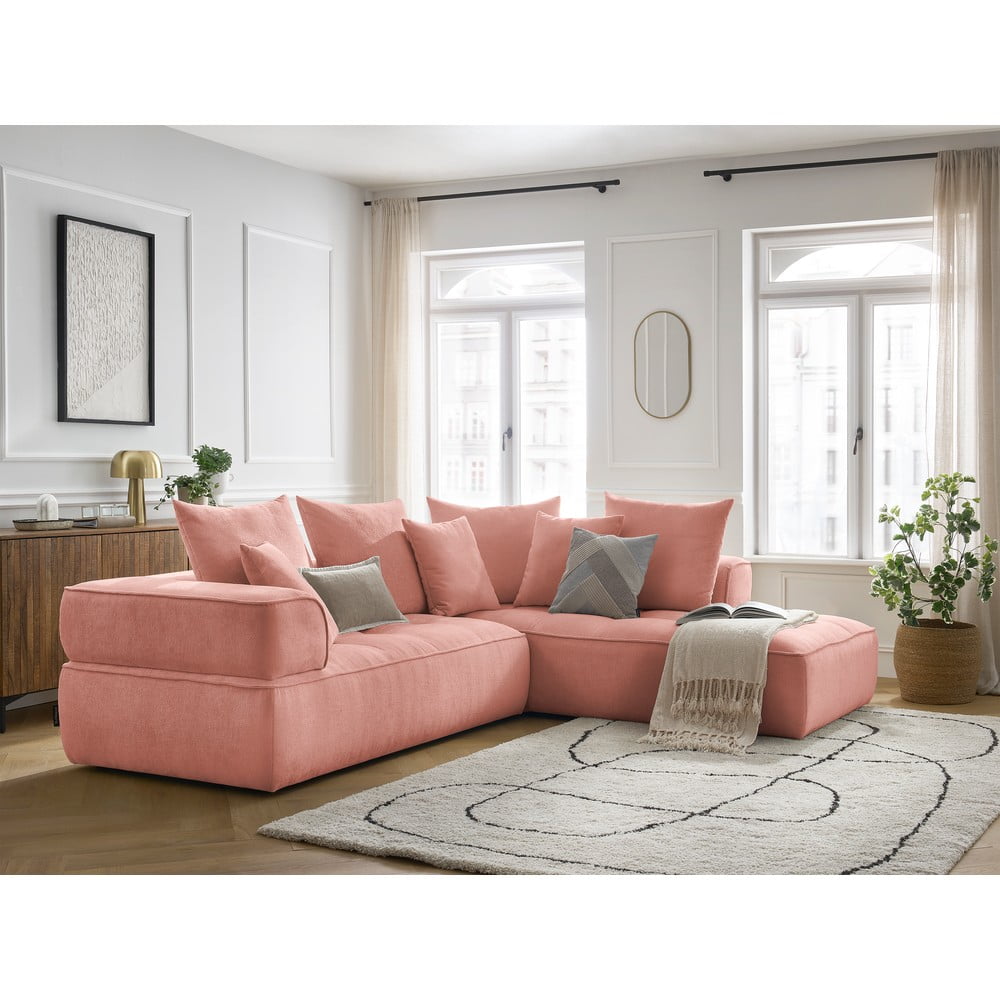 Różowy narożnik z tkaniny szenilowej (prawostronny/w kształcie litery L) Whesley – Bobochic Paris