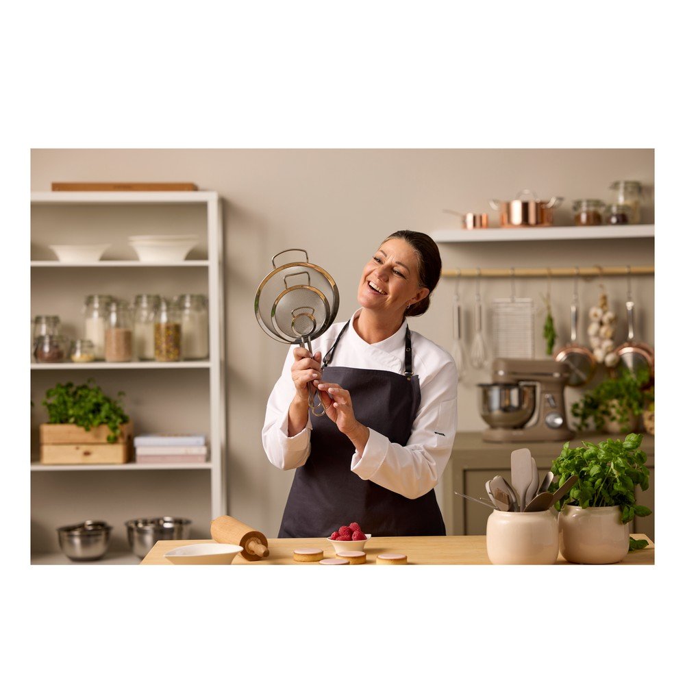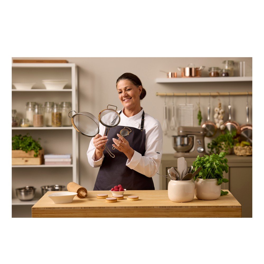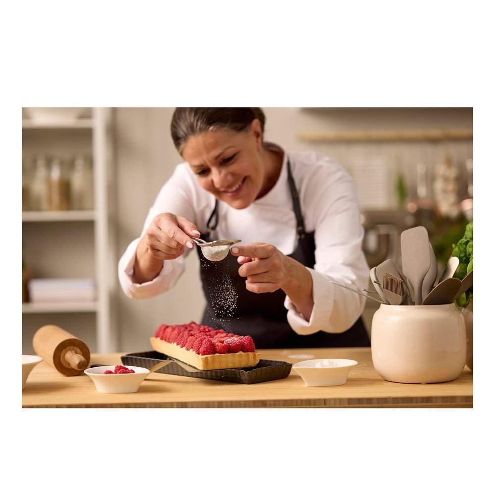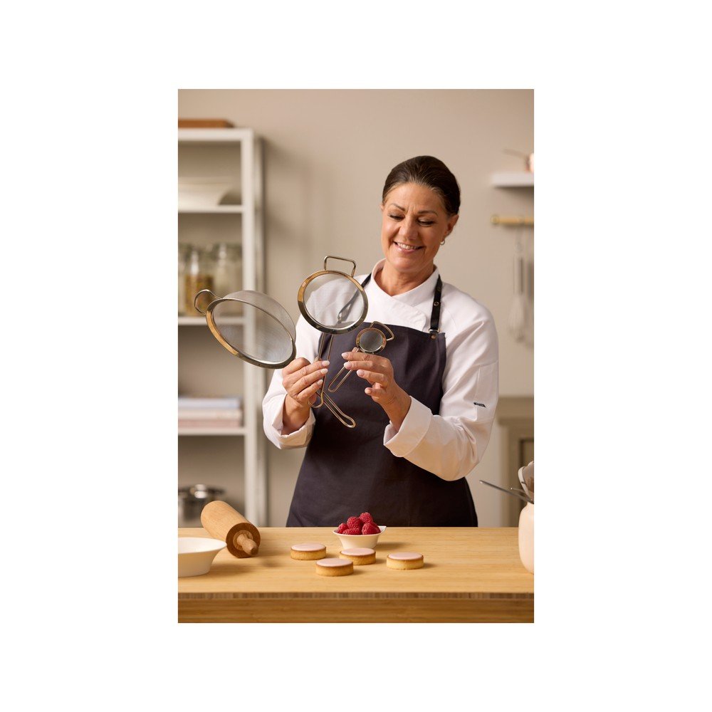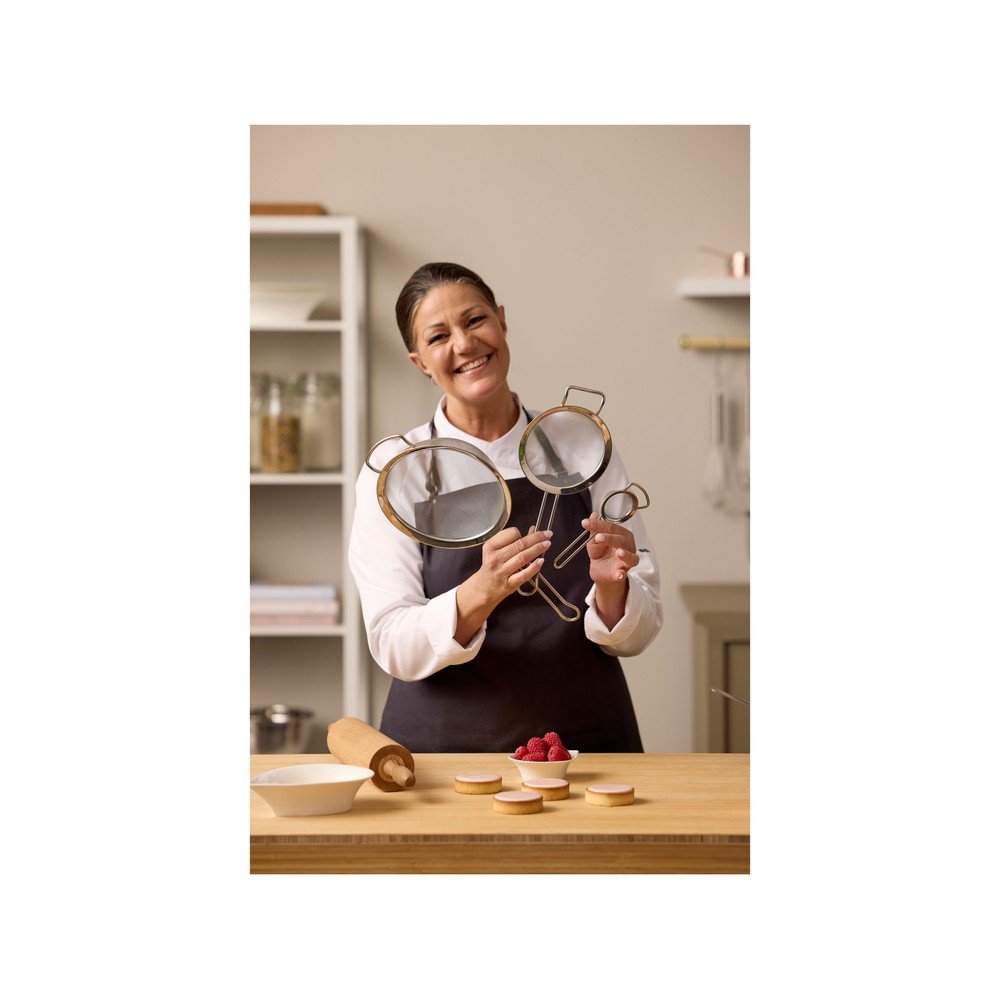 Nadaje się do przesiewania niewielkich ilości cukru pudru do muffinek, kakao do deserów lub cukru waniliowego do ciasta. Dzięki poręcznemu haczykowi można je łatwo zawiesić na krawędzi miski.