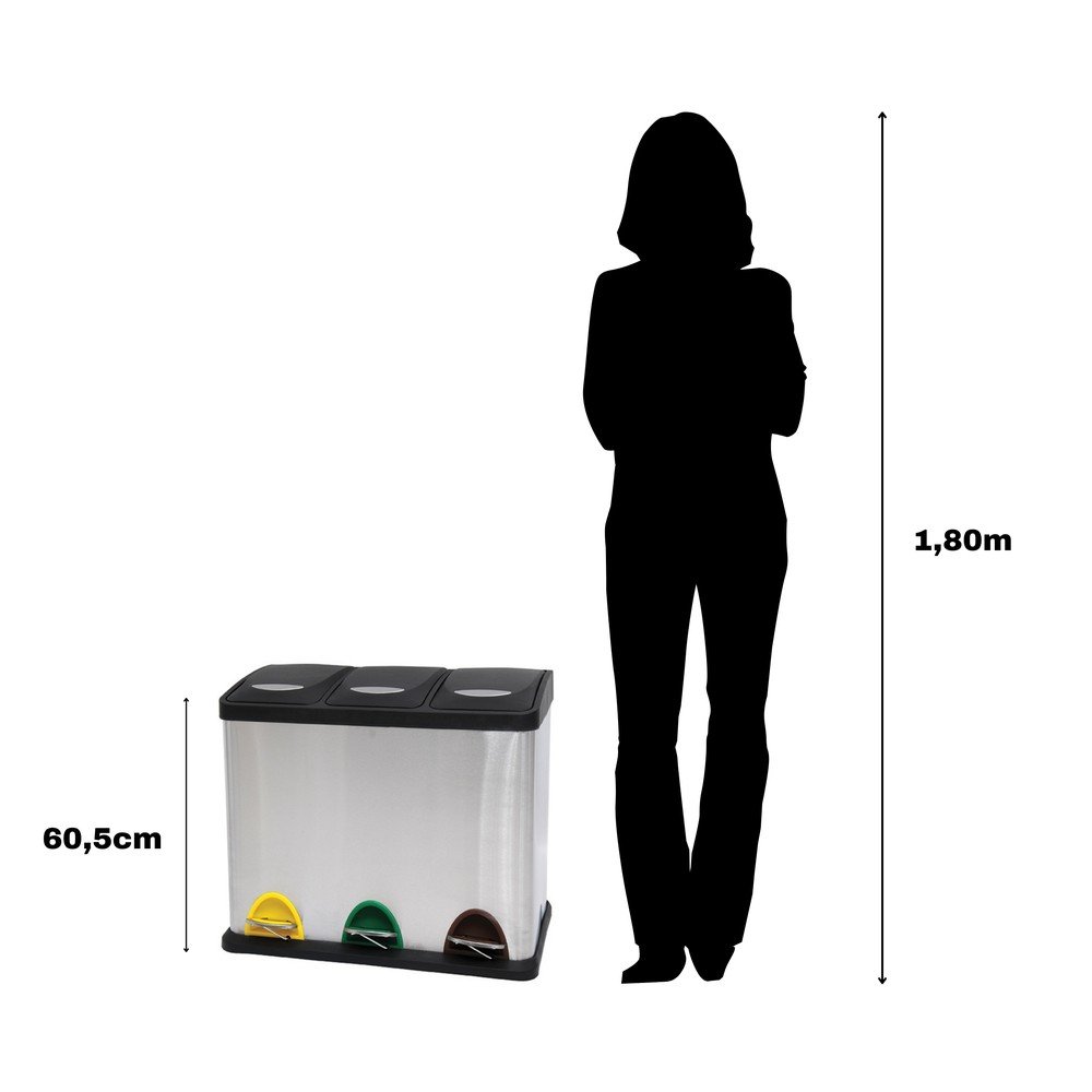 Kosz na śmieci Tri Selectif ułatwia sortowanie odpadów. Został zaprojektowany tak, aby ułatwić oddzielanie różnych rodzajów śmieci dzięki trzem osobnym pojemnikom. Każdy z nich ma pojemność 20 litrów i jest wyposażony we własny mechanizm z antypoślizgowymi pedałami do higienicznego i wygodnego użytkowania.