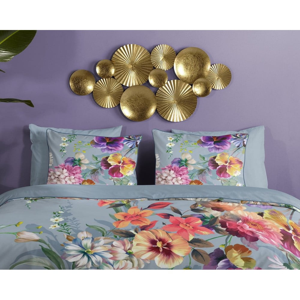 Szara pościel dwuosobowa z bawełny organicznej Descanso Sunflower, 200×220 cm
