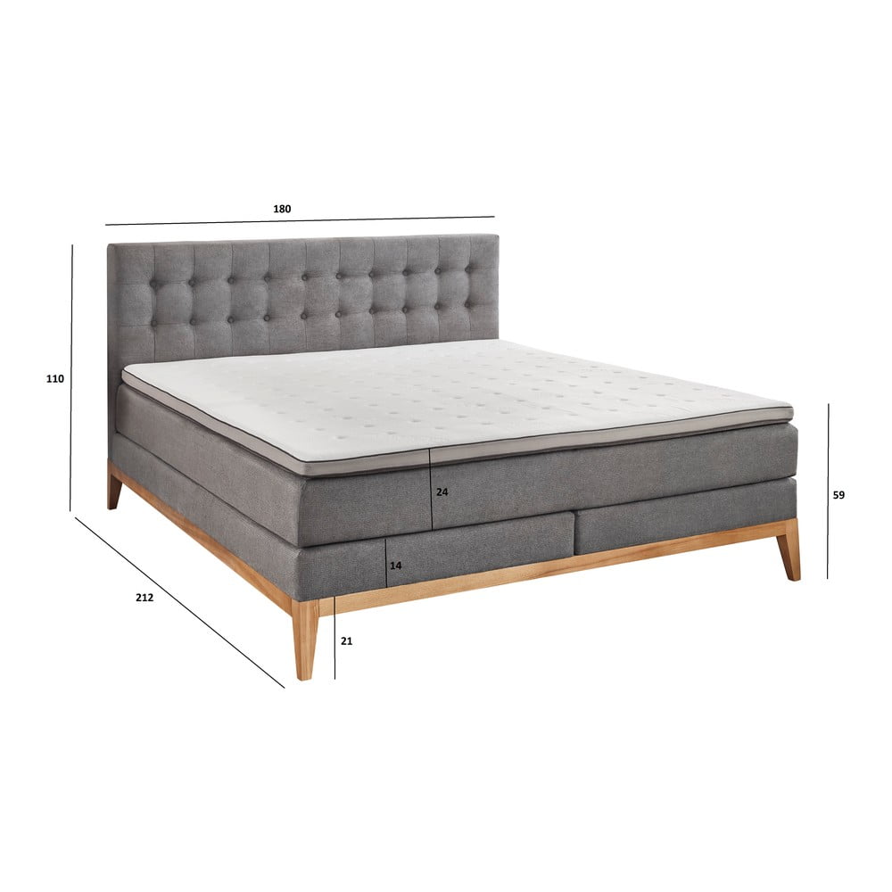 Szare łóżko boxspring 180×200 cm Westwood – Rojaplast
