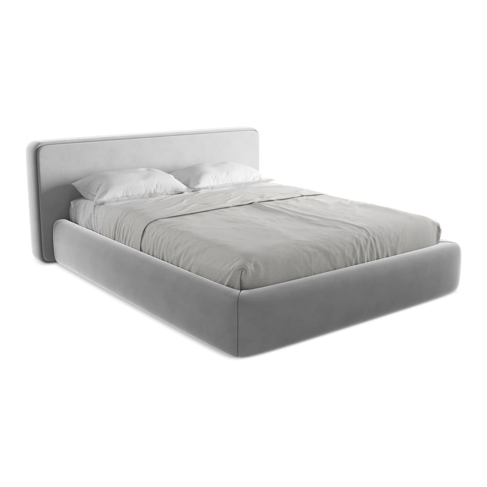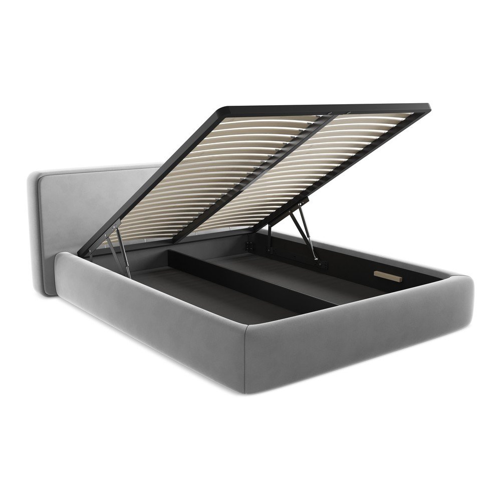 Szare tapicerowane łóżko dwuosobowe ze schowkiem i stelażem 160×200 cm Kiana – Makamii