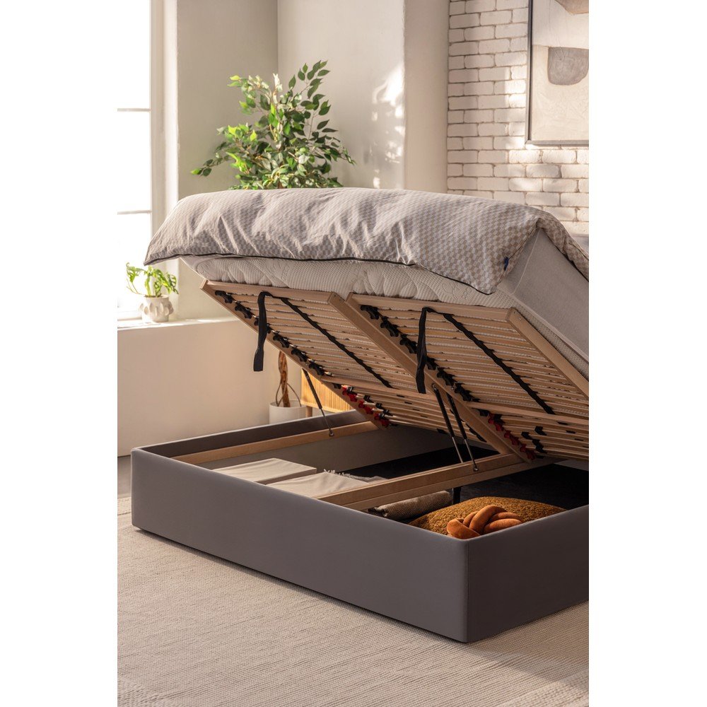 Rama łóżka znajduje się 9 cm nad ziemią, spokojnie zmieści się pod nią większość standardowych robotów sprzątających. Schowek o pojemności 30 kg pomieści sezonowe tekstylia, zapasową pościel i wiele innych rzeczy. Maksymalna wysokość pojemnika wynosi 20 cm w zależności od wybranej pozycji stelaża.
