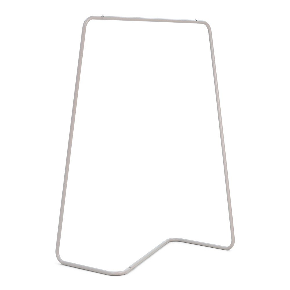 Konstrukcja stojaka składa się z dwóch identycznych ram bocznych oraz poprzecznych drążków. Dzięki zaledwie czterem elementom i sprytnemu systemowi przesuwnemu, montaż i demontaż jest niezwykle prosty i nie wymaga użycia żadnych narzędzi. Solidna stalowa rama gwarantuje nie tylko nowoczesny wygląd, ale także długotrwałą wytrzymałość.