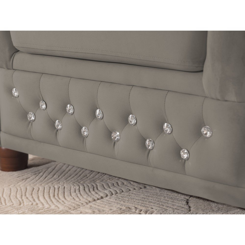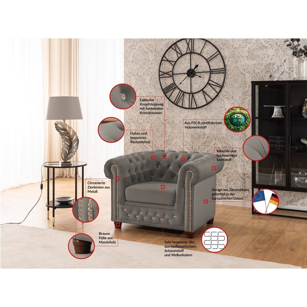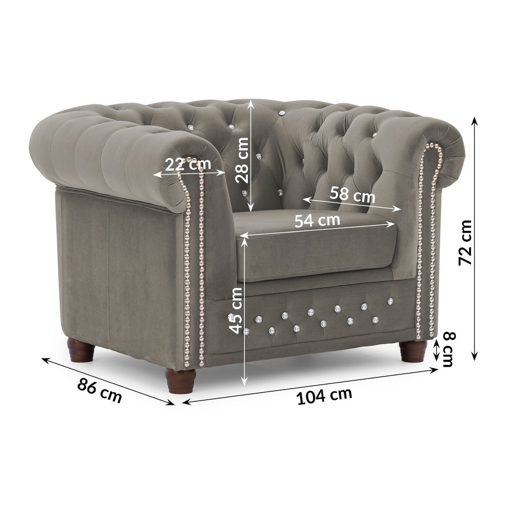Szary aksamitny fotel typu chesterfield York Blik – Ropez