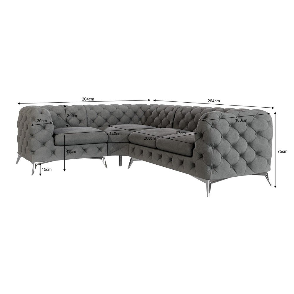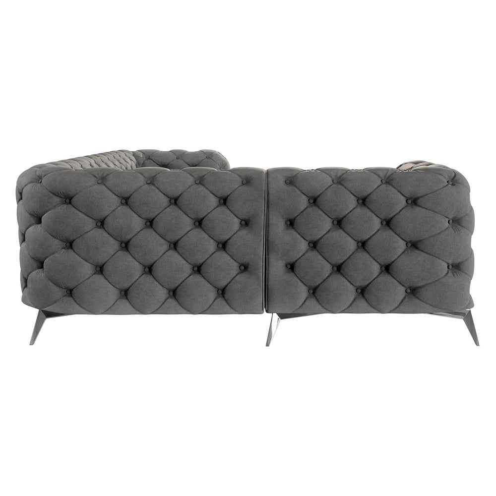 Szary aksamitny narożnik (lewostronny/w kształcie litery L) Chelsea – Ropez