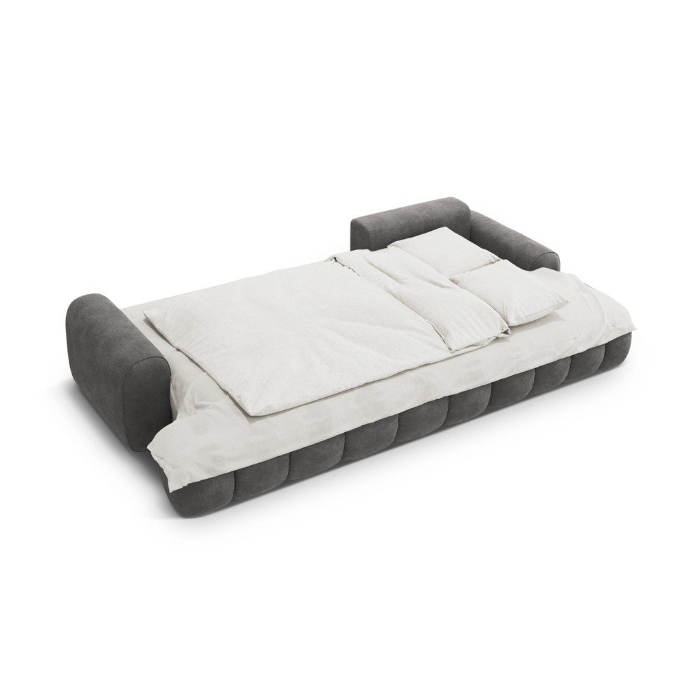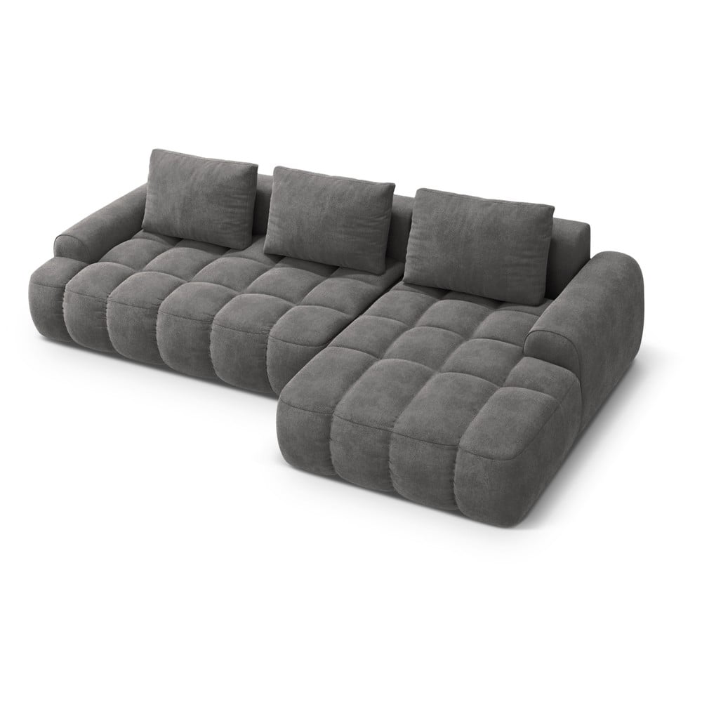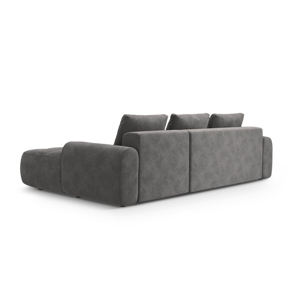 Szary aksamitny rozkładany/ze schowkiem narożnik (prawostronny/z szezlongiem) Linz – Cosmopolitan Design