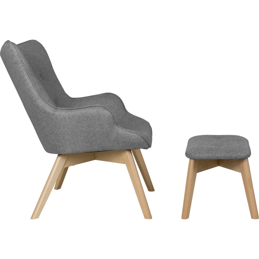 Szary fotel z podnóżkiem Niko – Ropez