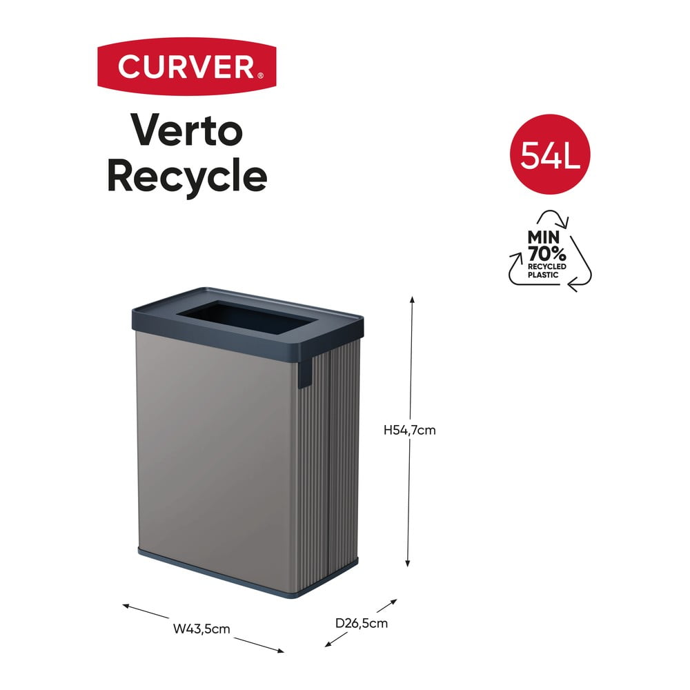 Prostokątny kosz ma pojemność 54 l, wykonany jest z materiału pochodzącego z recyklingu, a dzięki konstrukcji bez pokrywy znajdzie swoje miejsce nie tylko w kuchni, ale także w piwnicy czy garażu. Wytrzymała i lekka konstrukcja jest łatwa do przenoszenia i nie ślizga się, chroniąc podłogę przed zarysowaniami.