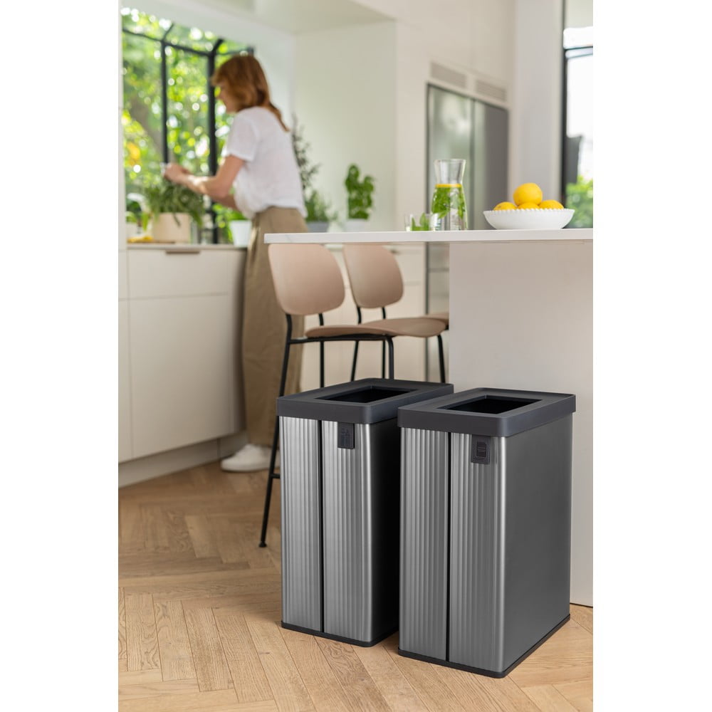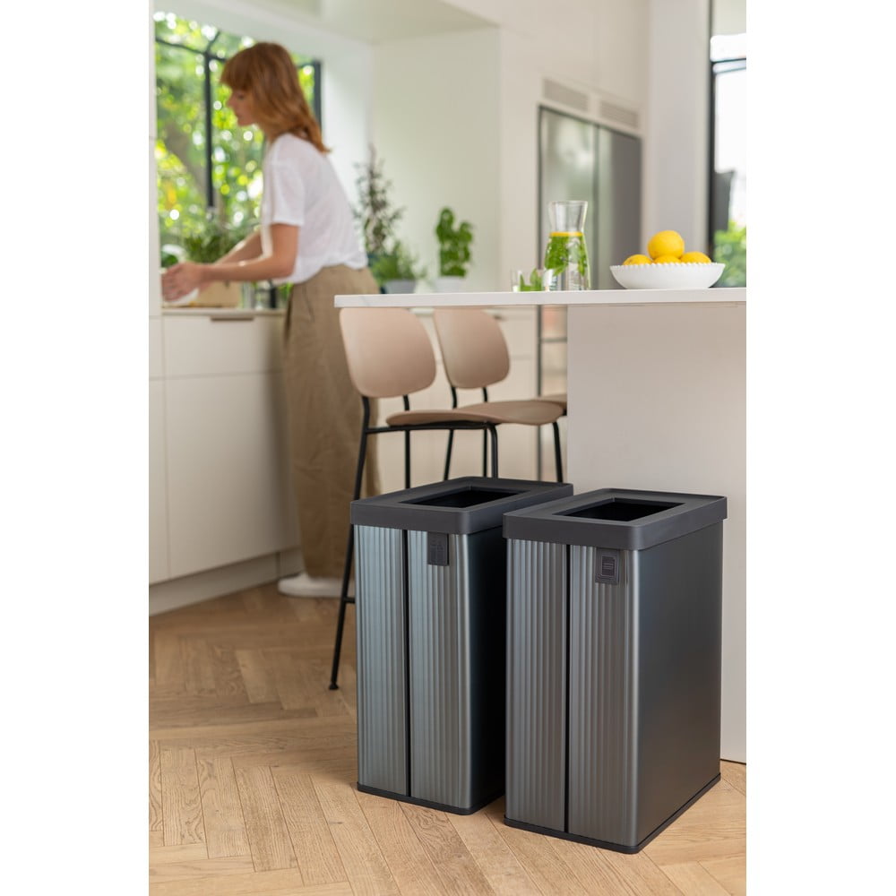 Możliwość umieszczenia od 1 do 2 worków ułatwi sortowanie odpadów, a 6 opcjonalnych etykiet recyklingowych pomoże zidentyfikować zawartość. Worek jest również całkowicie ukryty pod obręczą, dzięki czemu nie zakłóca estetyki wnętrza.