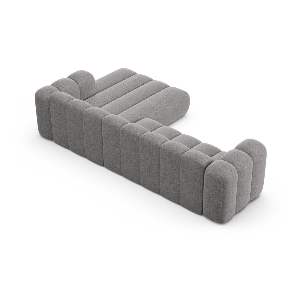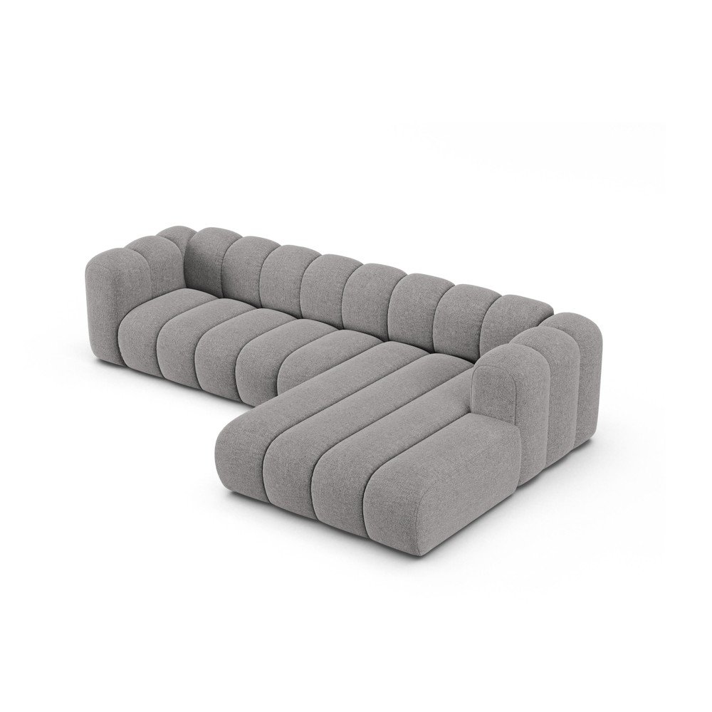 Szary narożnik z tkaniny szenilowej (prawostronny/z szezlongiem) Lupine – Micadoni