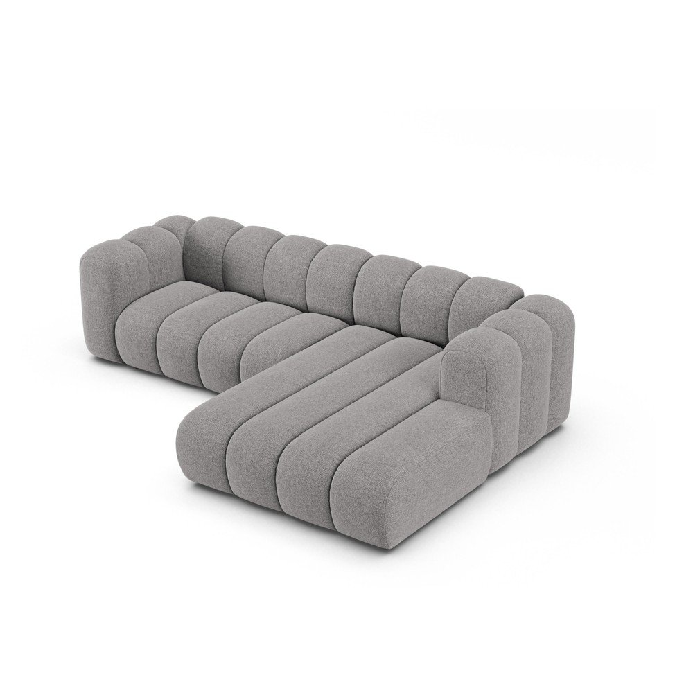 Szary narożnik z tkaniny szenilowej (prawostronny/z szezlongiem) Lupine – Micadoni