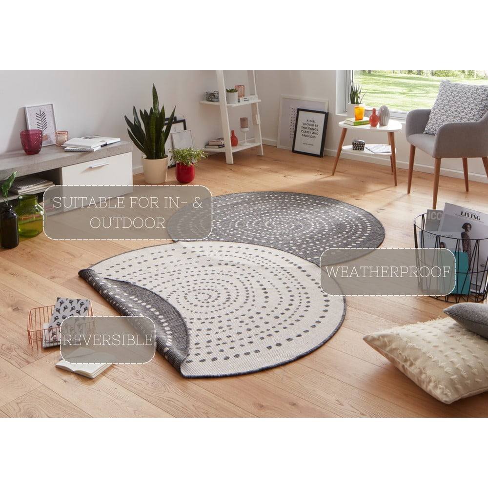 Szary okrągły dywan dwustronny odpowiedni na zewnątrz NORTHRUGS Bali, ⌀ 200 cm