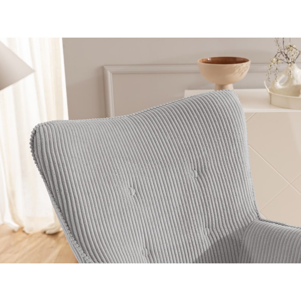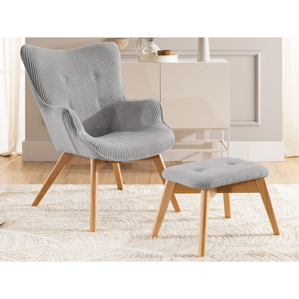 Szary sztruksowy fotel z podnóżkiem Niko – Ropez