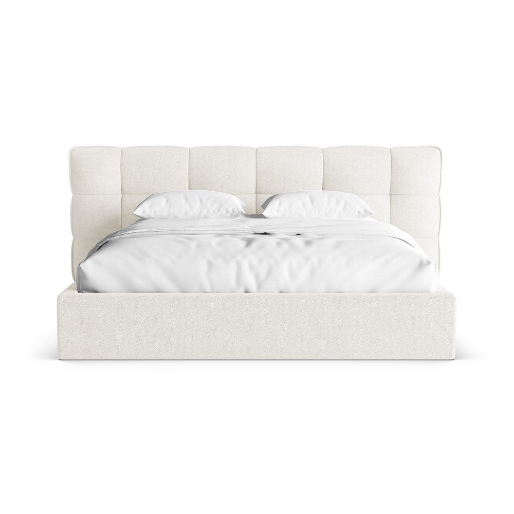 Tapicerowane łóżko dwuosobowe w kolorze kości słoniowej ze schowkiem i stelażem 160×200 cm Eric – Micadoni