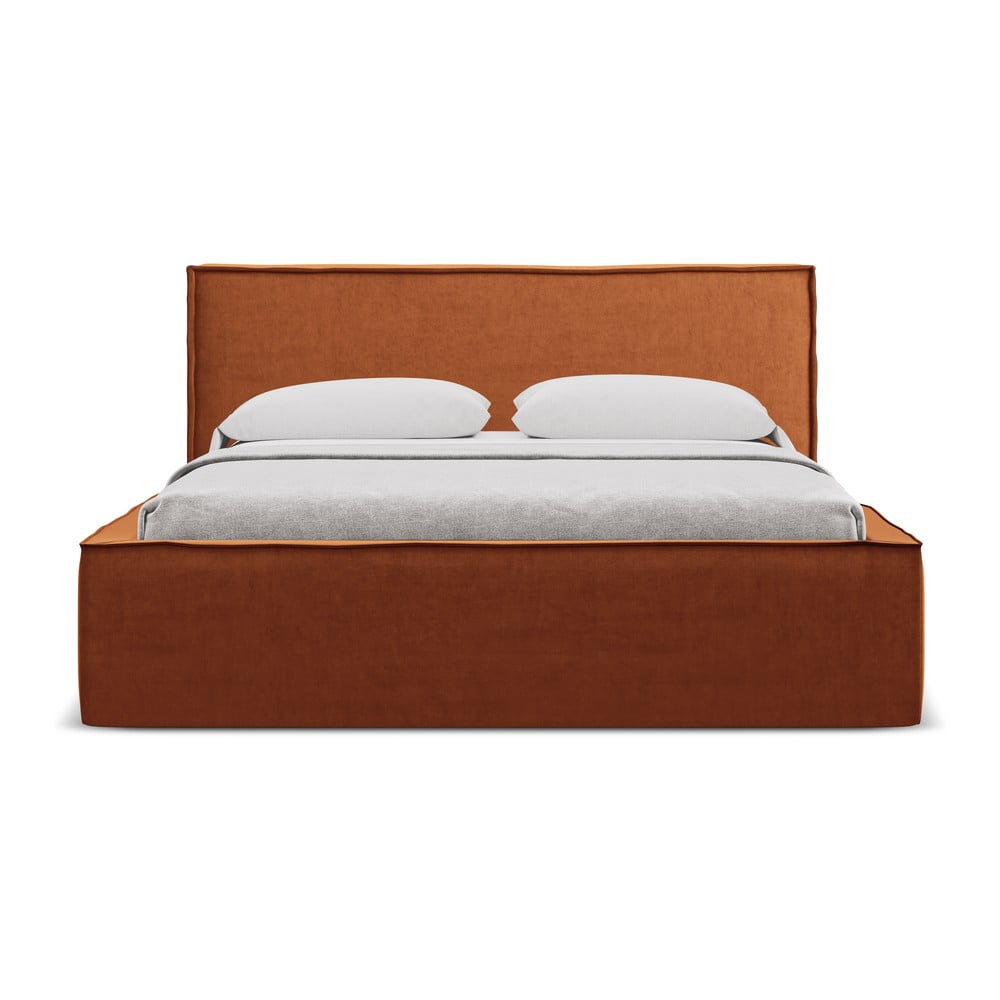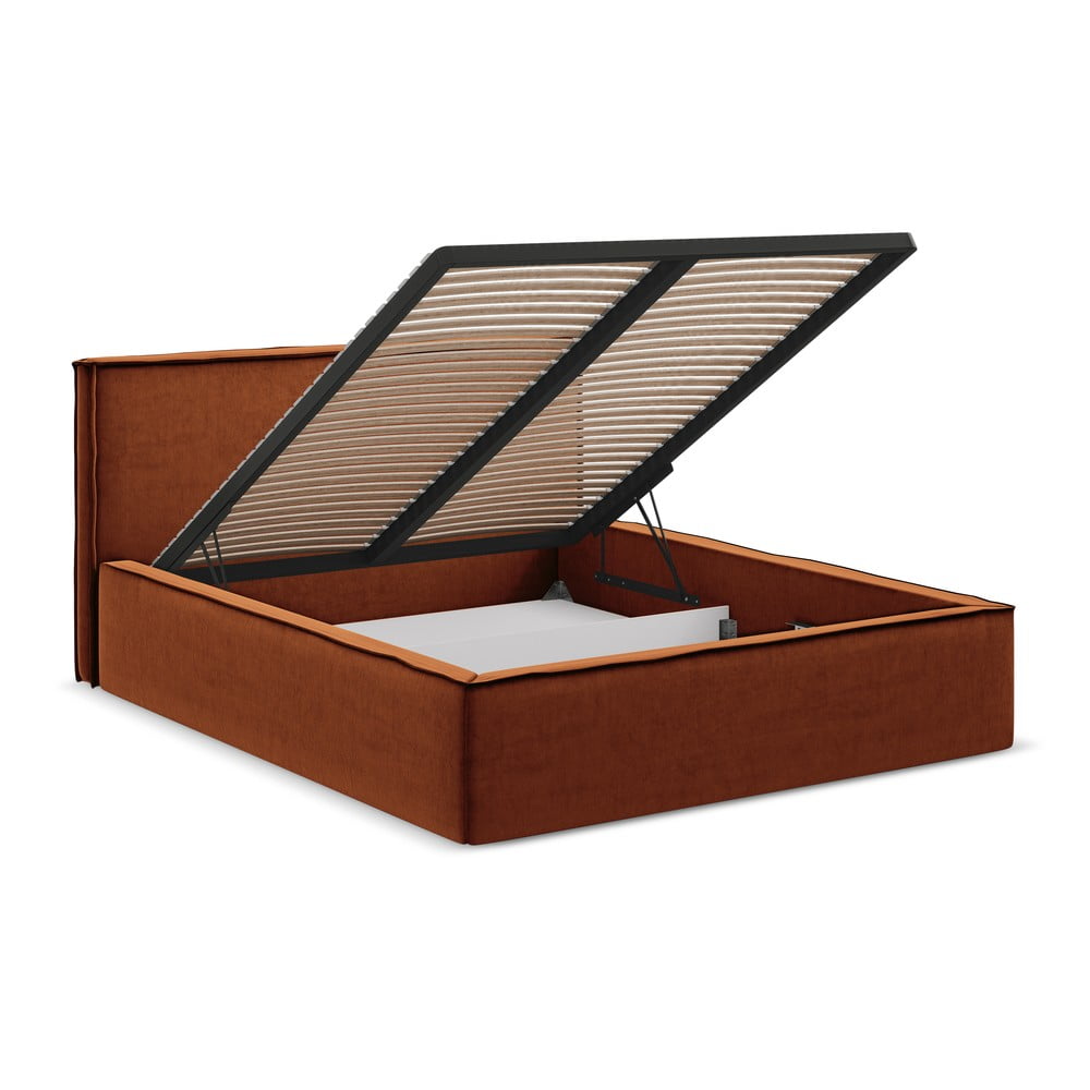 Tapicerowane łóżko dwuosobowe w kolorze terakoty ze schowkiem i stelażem 180×200 cm Anani – Makamii