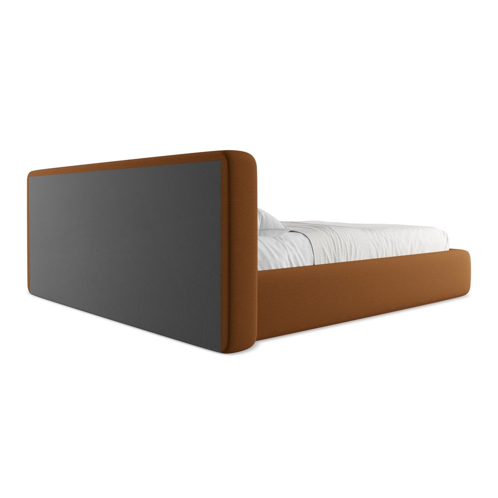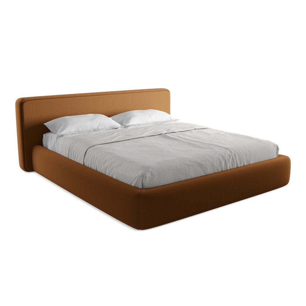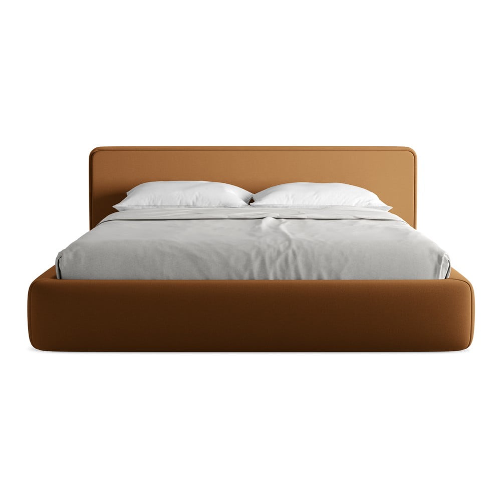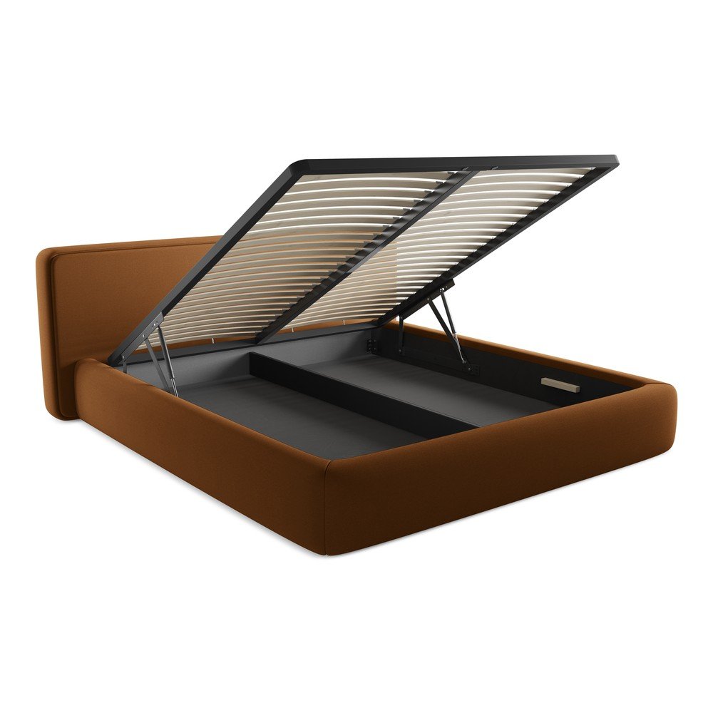 Tapicerowane łóżko dwuosobowe w kolorze terakoty ze schowkiem i stelażem 180×200 cm Kiana – Makamii