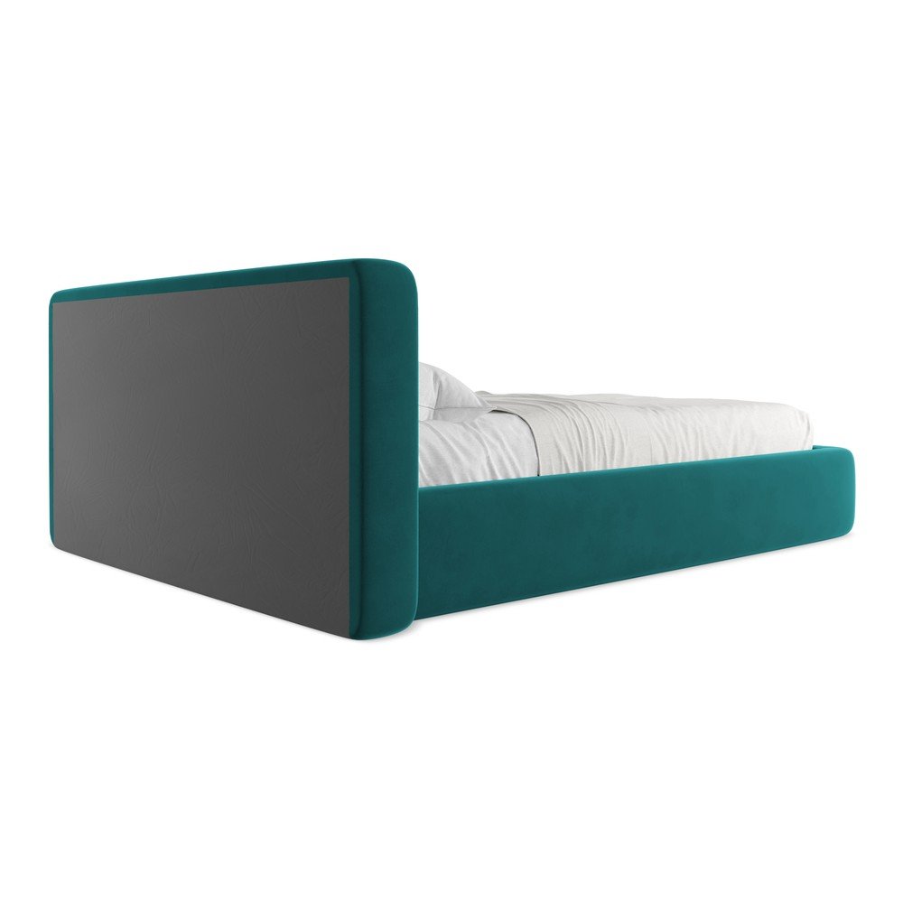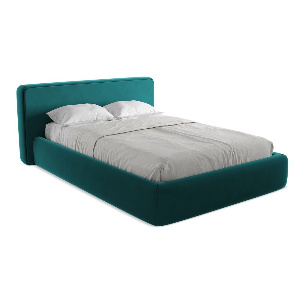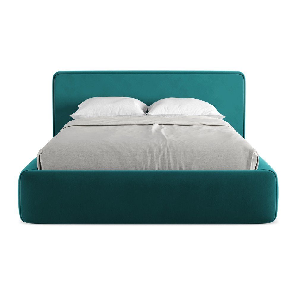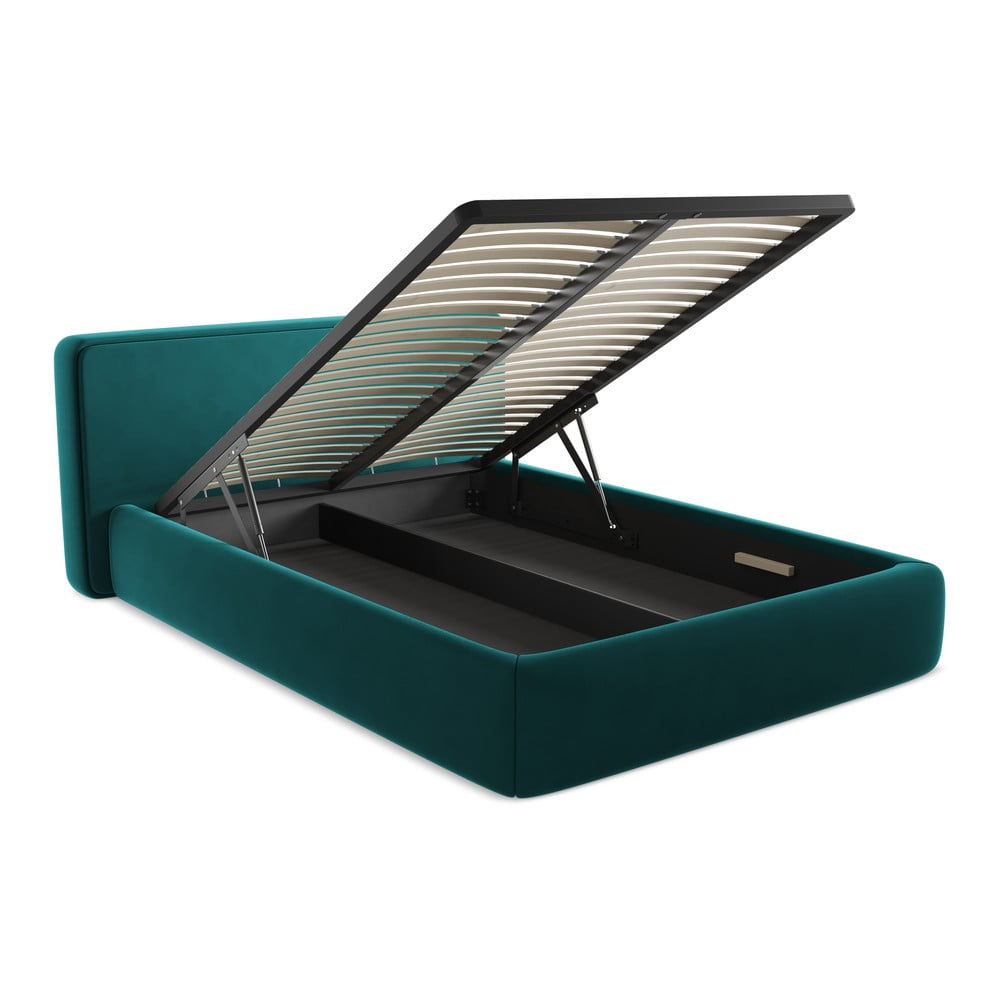 Turkusowe tapicerowane łóżko dwuosobowe ze schowkiem i stelażem 140×200 cm Kiana – Makamii
