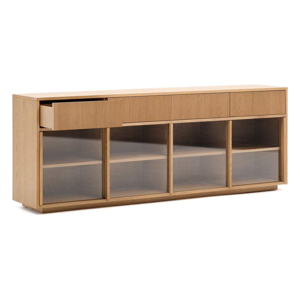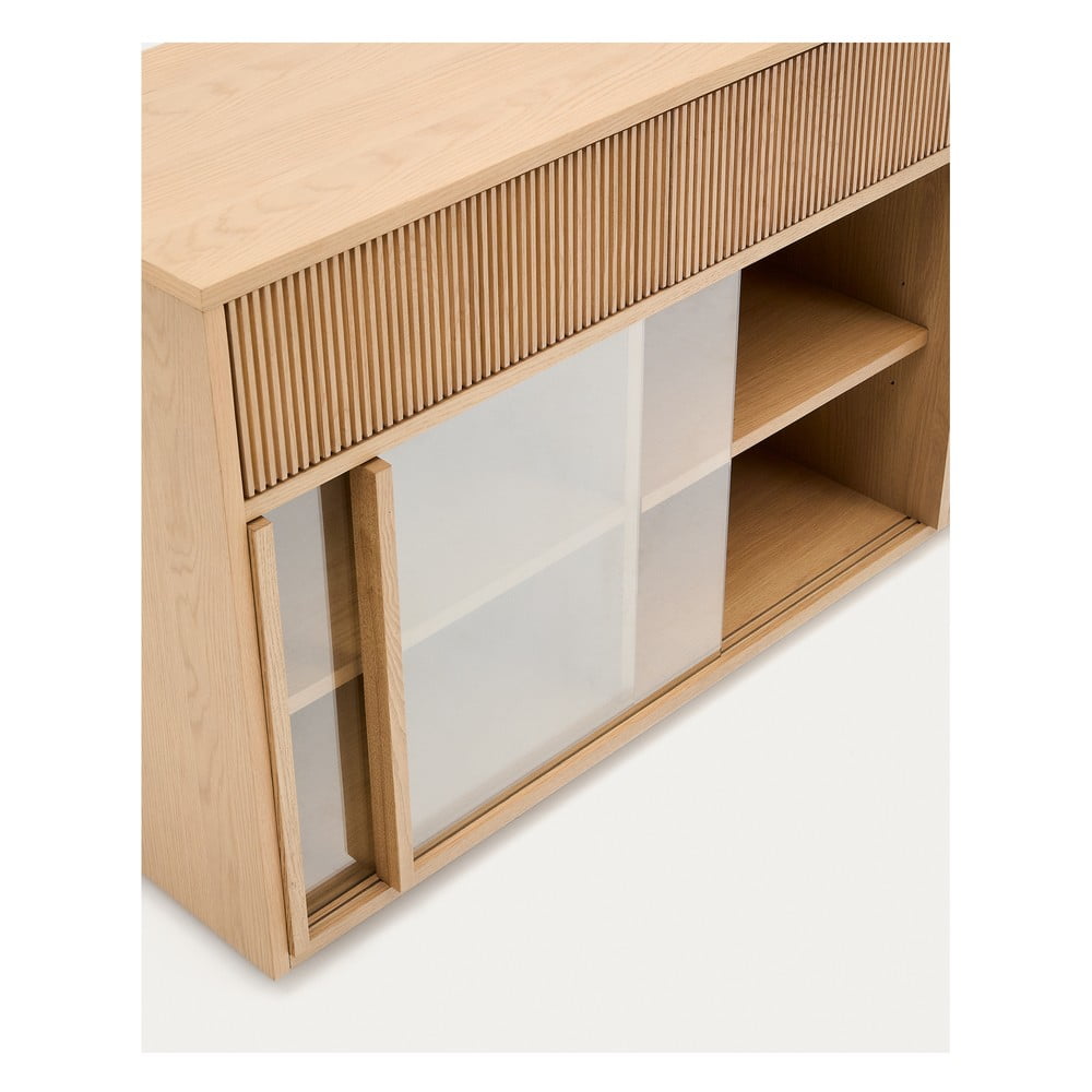 Witryna w dekorze dębu z drzwiami przesuwnymi w naturalnym kolorze 200x80x40 cm Helvine – Kave Home