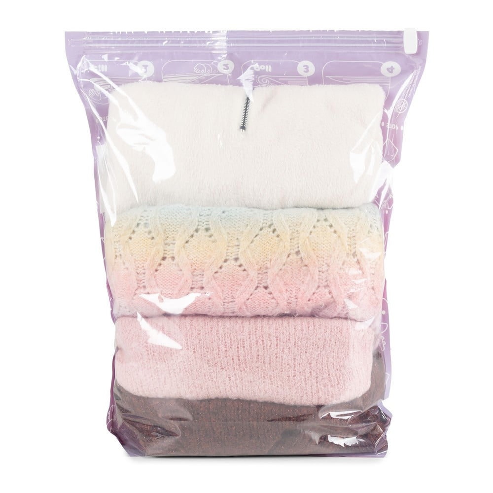 Worki do przechowywania ubrań i kołder mogą być używane do 100 razy. Do worków dołączony jest suwak, który umożliwia szybkie i łatwe zamykanie. Nie trzeba wytwarzać próżni, ponieważ worki podróżne można ściskać ręcznie.