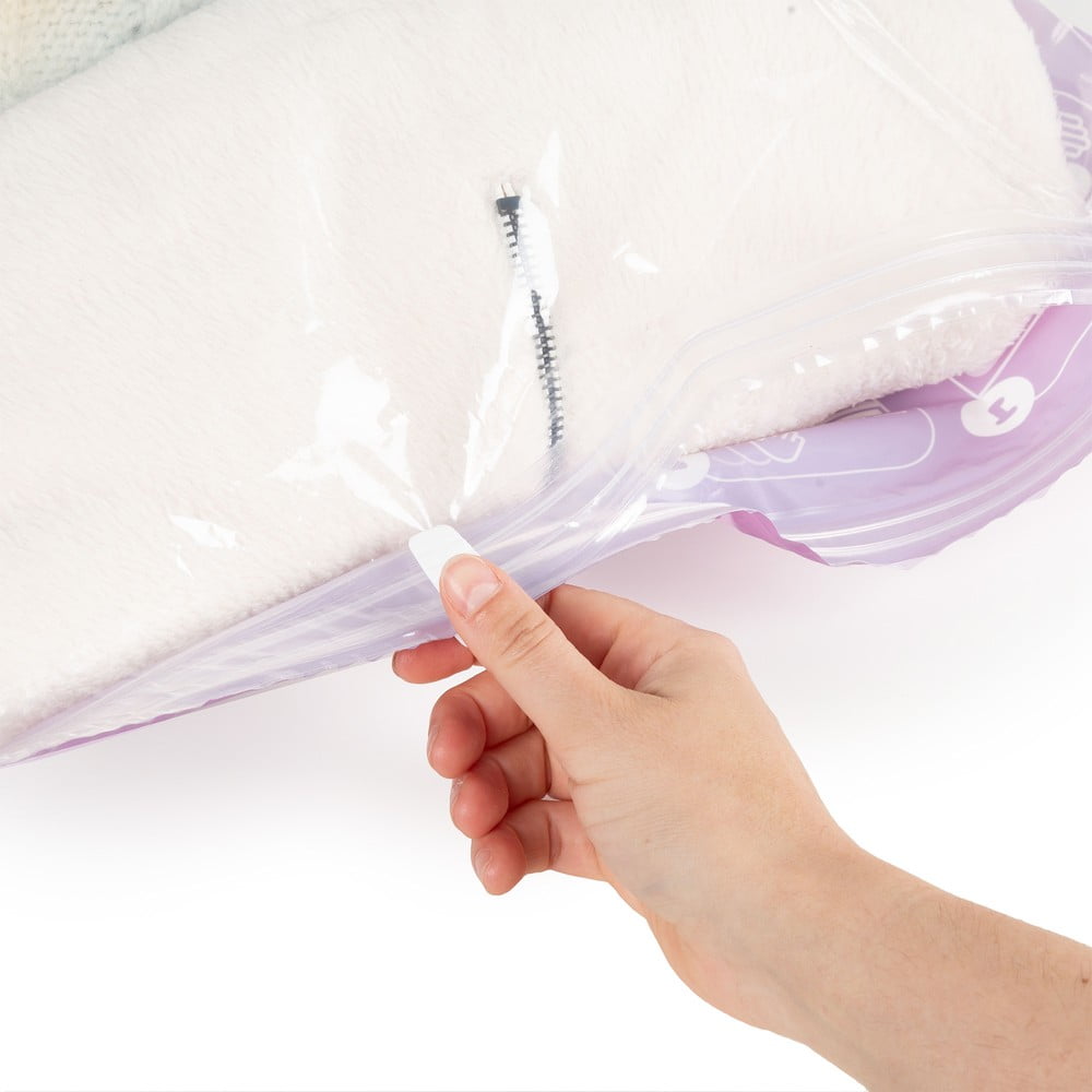 Są one niezwykle łatwe w użyciu. Ręcznie usuniesz powietrze poprzez zwinięcie worka i natychmiastowe zamknięcie go na podwójny zamek błyskawiczny za pomocą dołączonego suwaka.