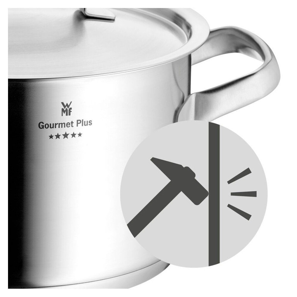 Zestaw garnków Gourmet marki WMF to świetna podstawa do każdej kuchni. Składa się z siedmiu elementów: trzech garnków z pokrywkami oraz jednego rondla, co zapewnia wszechstronność podczas gotowania.