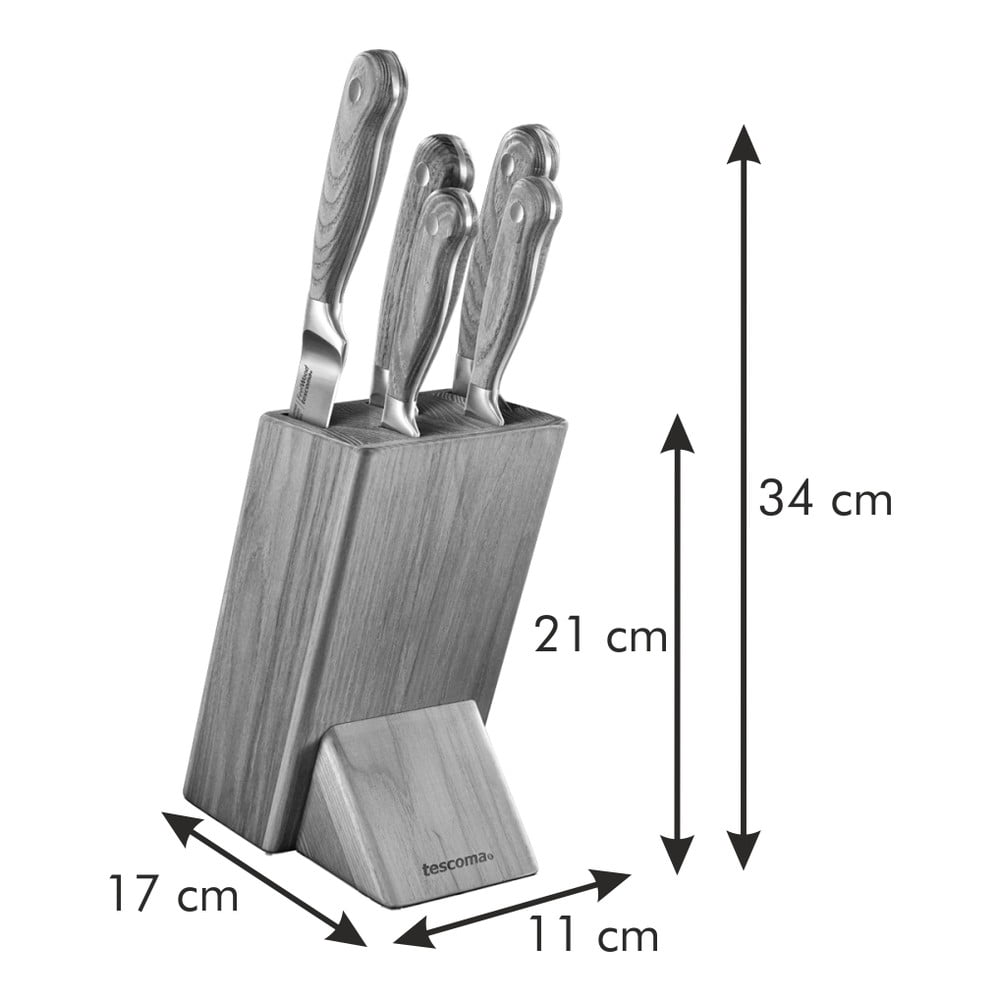 Noże Feelwood są kute z japońskiej stali nierdzewnej, która zapewnia ostrzu trwałość i ostrość. Wygodną obsługę zapewnia ergonomicznie ukształtowana rękojeść wykonana z hartowanego drewna jesionowego. Całość uzupełnia stojak do przechowywania noży, zapewniający bezpieczne i wygodne przechowywanie.