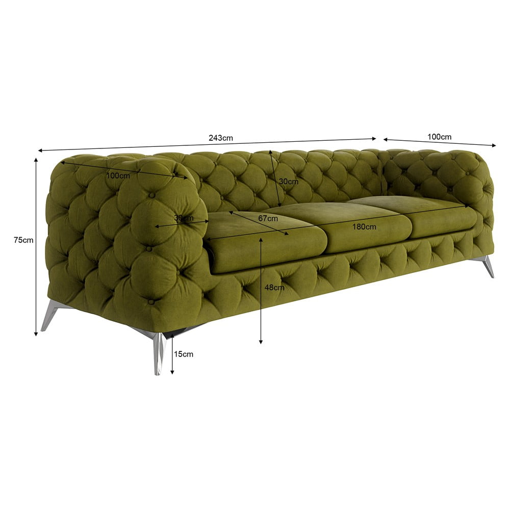 Zielona aksamitna sofa 243 cm Chelsea – Ropez