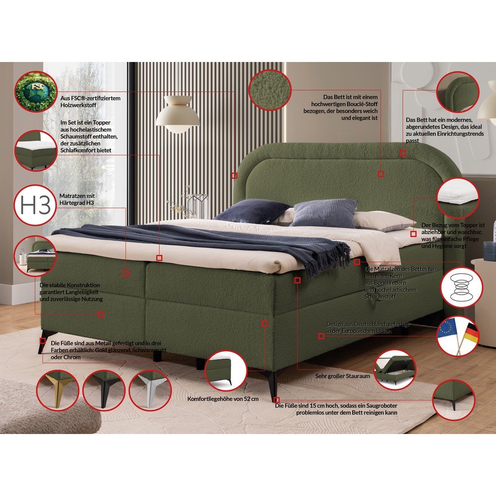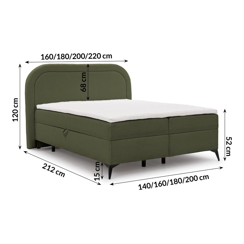 Zielone łóżko kontynentalne ze schowkiem 160×200 cm Ornes – Ropez