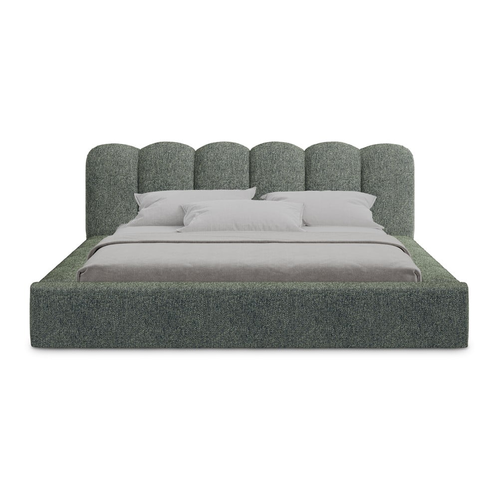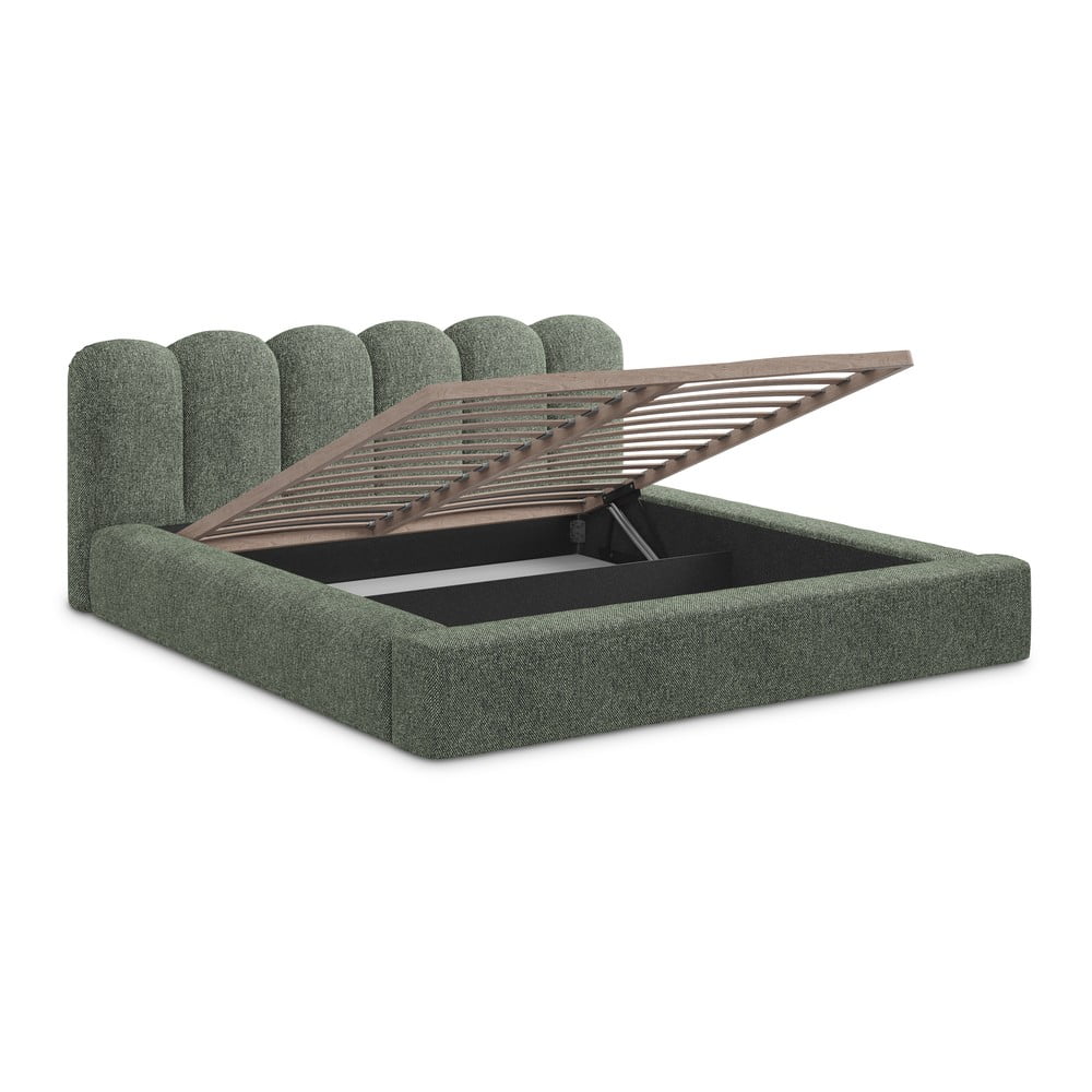 Zielone tapicerowane łóżko dwuosobowe ze schowkiem i stelażem 180×200 cm Mano – Makamii