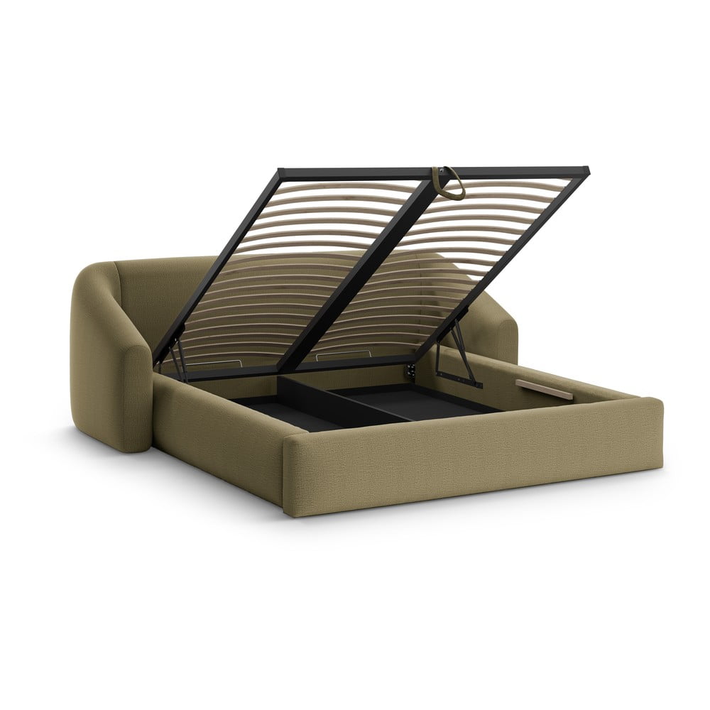 Zielone tapicerowane łóżko dwuosobowe ze schowkiem ze stelażem 200×200 cm Campi – Cosmopolitan Design