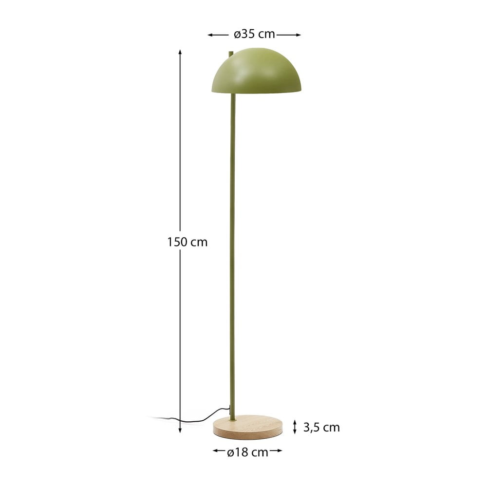 Lampa podłogowa Catlar marki Kave Home wykonana jest z metalu z zielonym wykończeniem. Lampa ma półokrągły klosz i stoi na prostej podstawie z drewna jesionowego. Jest kompatybilna……