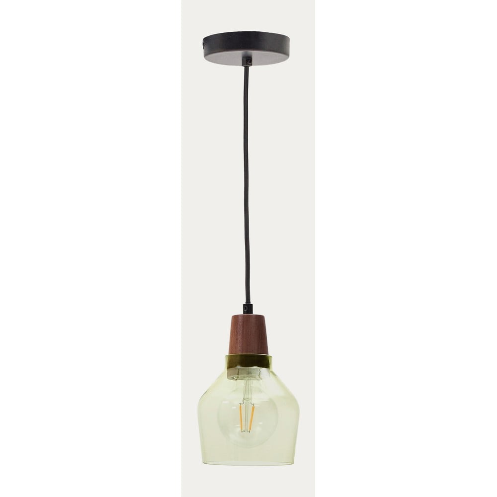 Lampa wisząca Silex marki Kave Home łączy w sobie elegancję zielonego szkła z ciepłem drewna orzechowego. Oprawa o średnicy 13 cm jest przystosowana do żarówek E27 o maksymalnej mocy 40 W. Żarówka nie jest dołączona do zestawu.