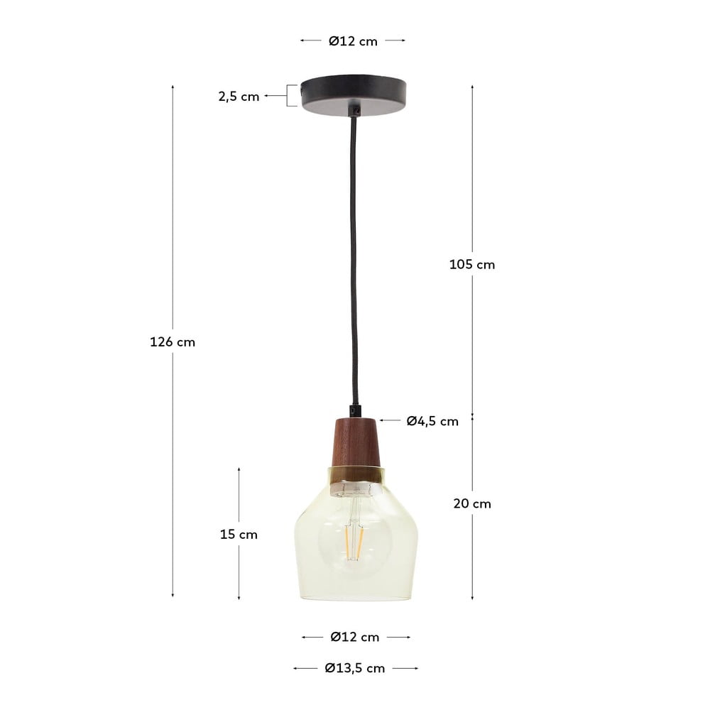 Lampa wisząca Silex marki Kave Home łączy w sobie elegancję zielonego szkła z ciepłem drewna orzechowego. Oprawa o średnicy 13 cm jest przystosowana do żarówek E27 o maksymalnej mo……