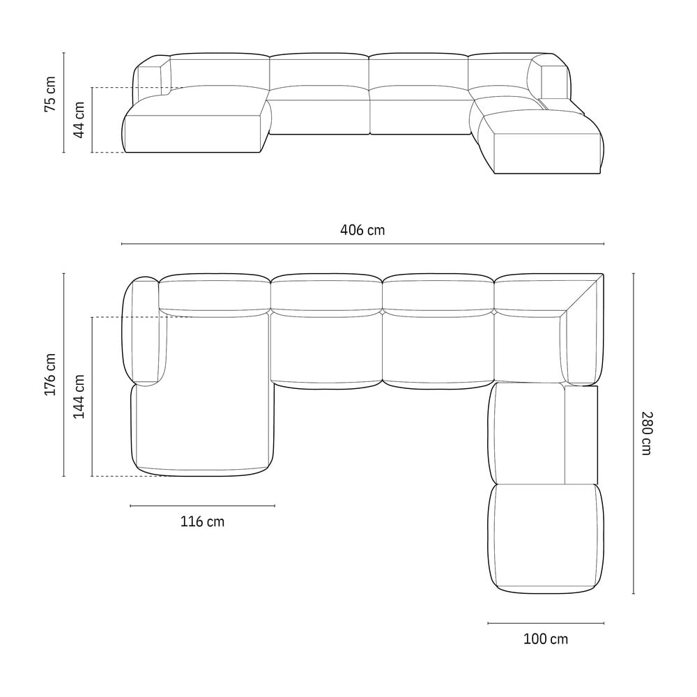 Dzięki modułowej konstrukcji można łatwo dostosować sofę do własnych potrzeb. Dostępny jest również stolik boczny, a także poduszki, które zapewniają dodatkowe wsparcie i uzupełniają ogólny wygląd. Poduszki i stolik nie są dołączone do zestawu i należy je dokupić osobno.